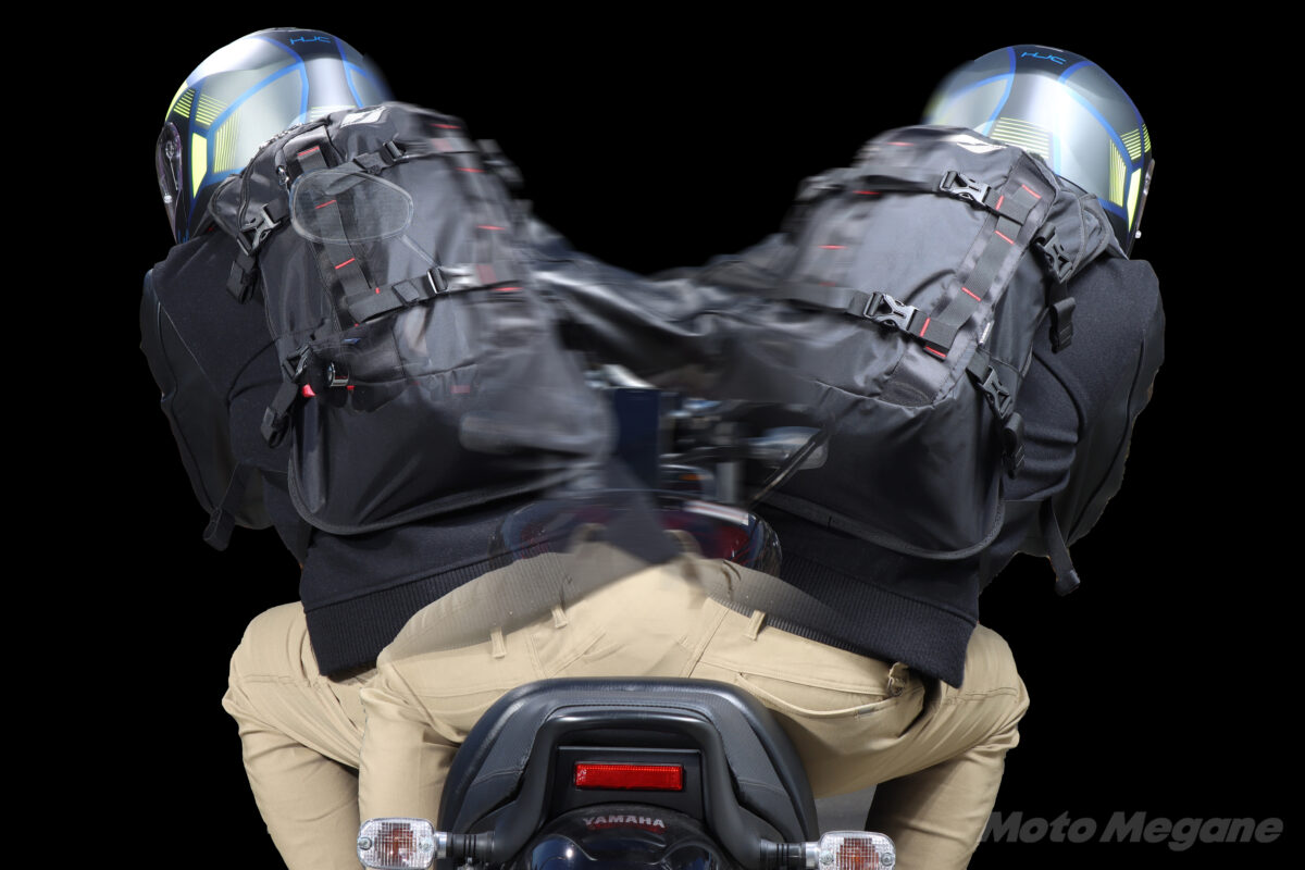 バイク用の製品でない場合は特にライディングの前傾姿勢に適さないことが多く、風の抵抗や荷物の重さにより上半身が揺さぶられて、姿勢の不安定感を生み出す要因となってしまうのだ。