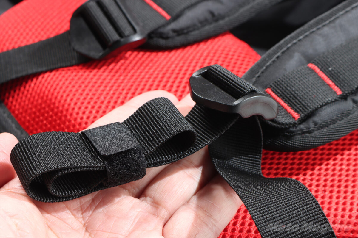 また、すべてのストラップには余剰部分をまとめておけるバンドを装備しており、走行風で暴れることがないのだ。バイク用品メーカーが創ったからこそ、細部までバイクに向けた使い勝手の向上が図られている。
