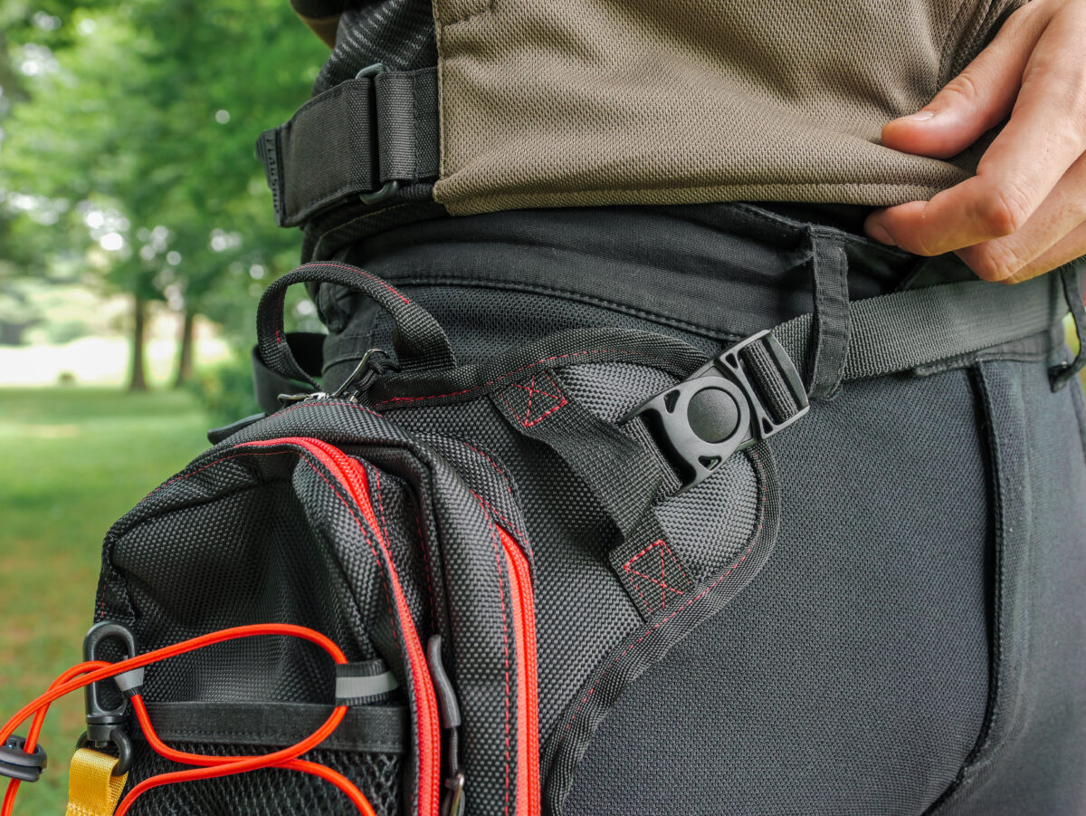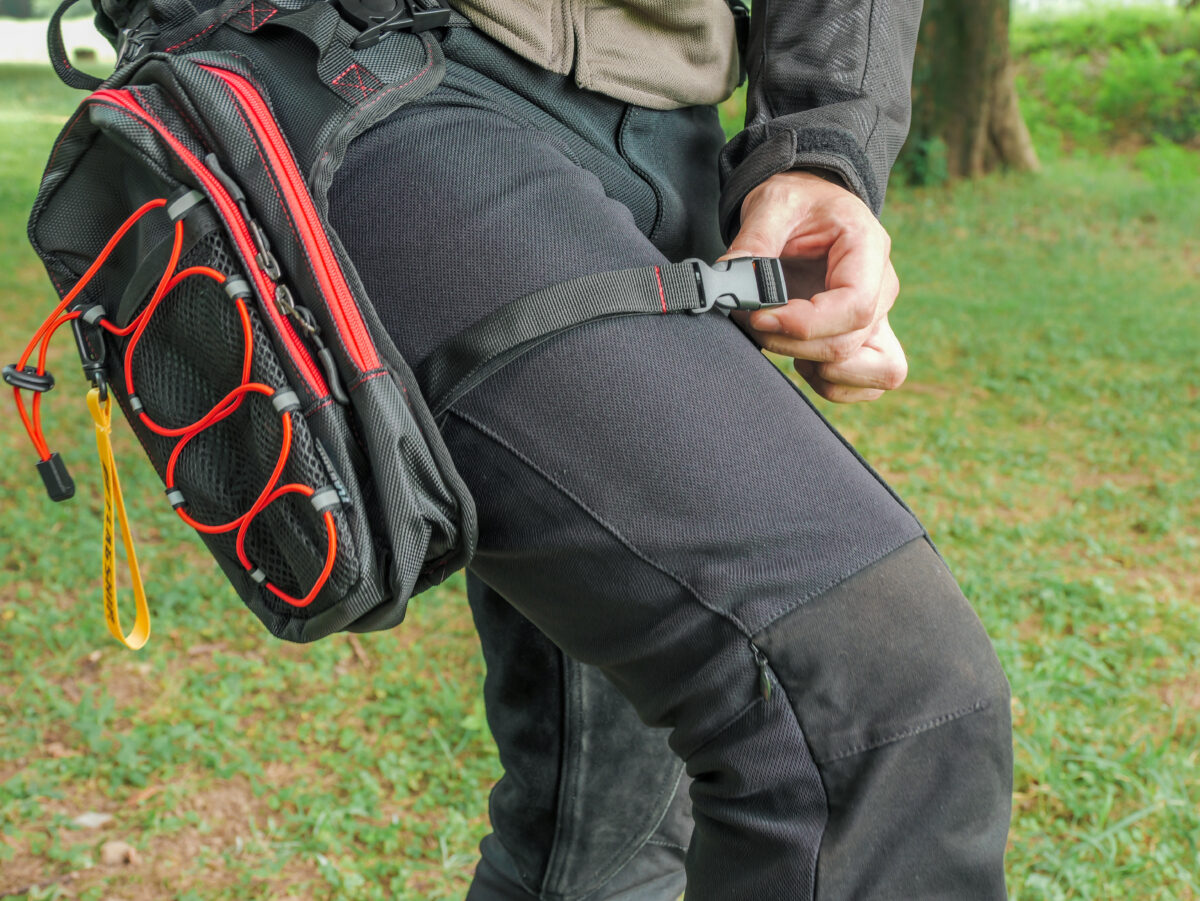 装着についても慣れてしまえば非常に簡単で、ワンタッチのバックルでウエストベルトと太もものベルトを付けるだけ。少し手間でもウエストベルトをベルトループに通しておくことによって、バッグがずり落ちてしまうことがないのでおすすめだ。また、太もものベルトは自分の体格に合わせて3段階に調整ができる。