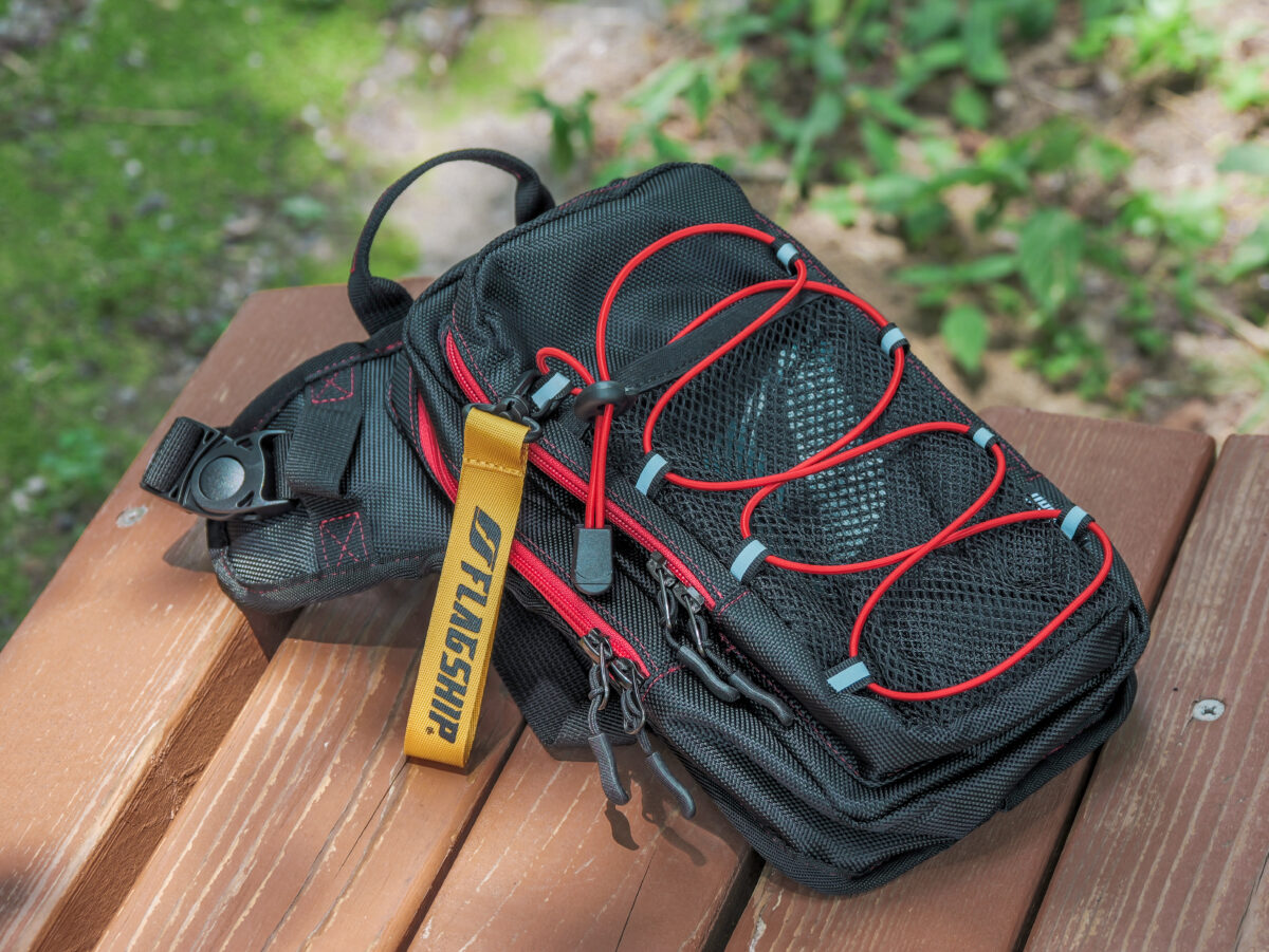 まずは今回紹介していく3つのバッグの中でも最もおすすめしたいグランデヒップバッグから紹介していこう。ボディーバッグとしてはかなり大ぶりな設計となっているヒップバッグなのだが、こちらは実際に装着してみるとその大きさに反して乗車中に邪魔になるような様子は一切なく、かなり自然に着用することができる。また、着用時にお尻をすっぽり隠すことができるので、女性ライダーにもおすすめだ。