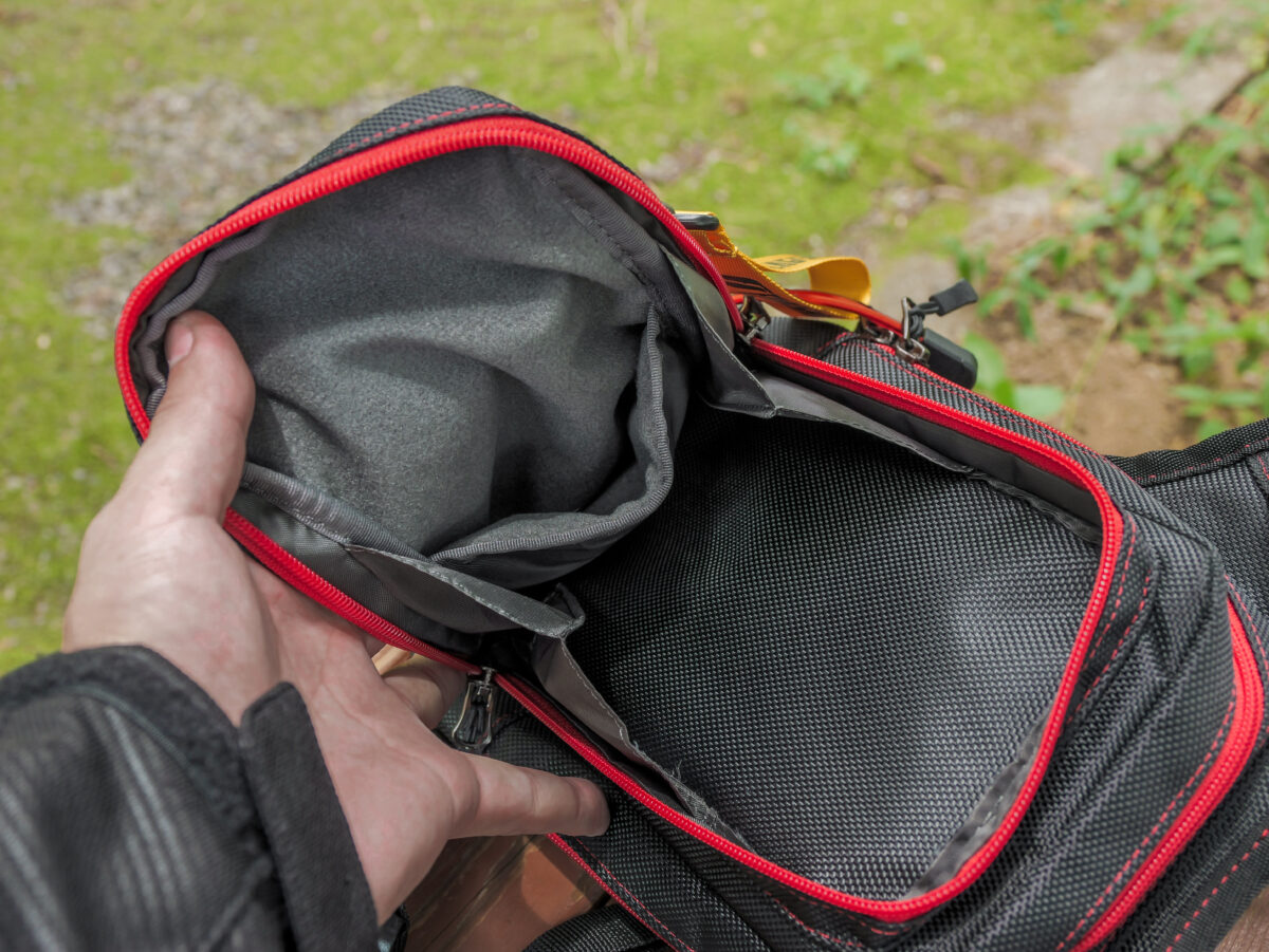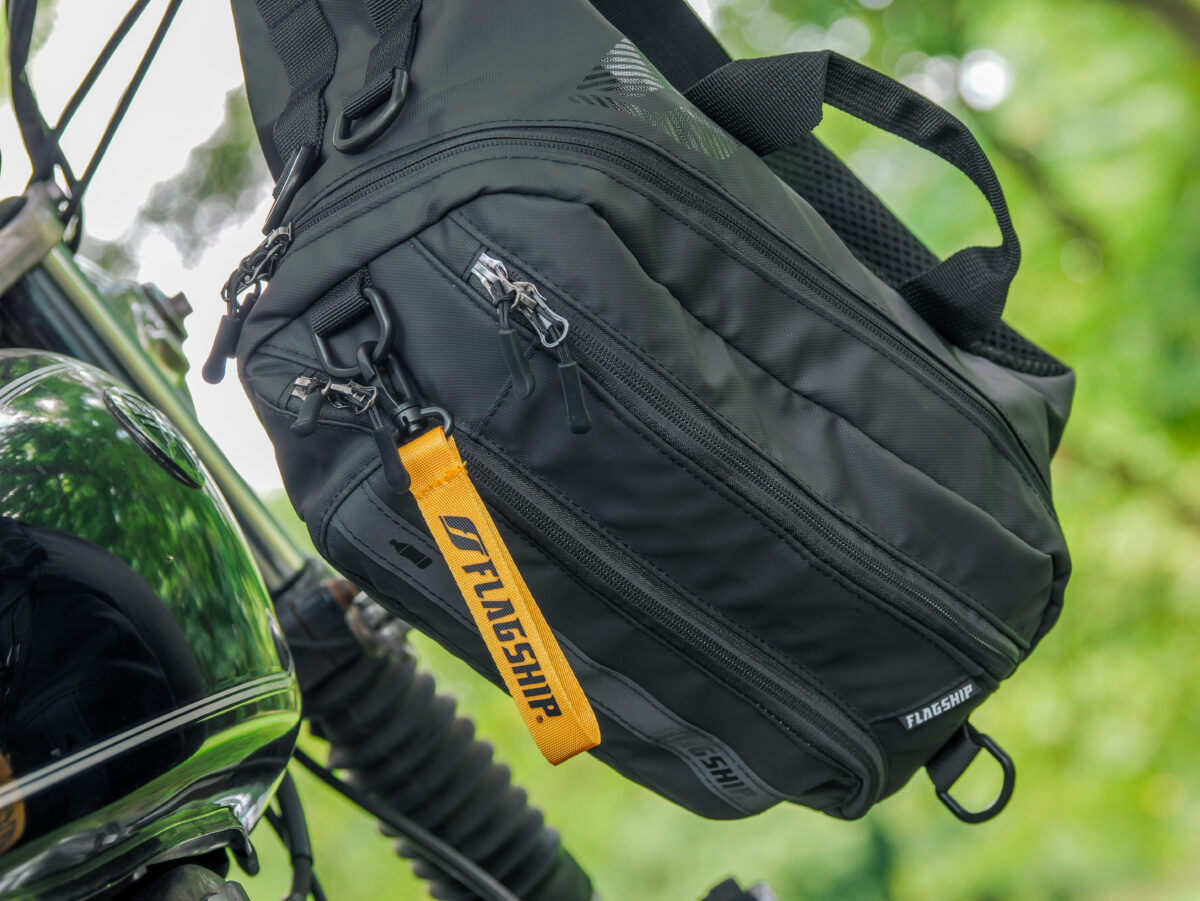 こちらはバイクに乗っていない時や私服での普段使いにも馴染みやすく、小さいながらも3室に分かれた荷室はインナーポケットやメッシュポケット、キーフックまでついているので、近場でのツーリングならこれ1つでも完結できるが、長距離でのツーリング時にはツーリングバッグにプラスして持っておくという使い方もおすすめ。また、ツーリングはもちろん普段使いから音楽フェスなどの様々なアクティビティでも大活躍しそうだ。