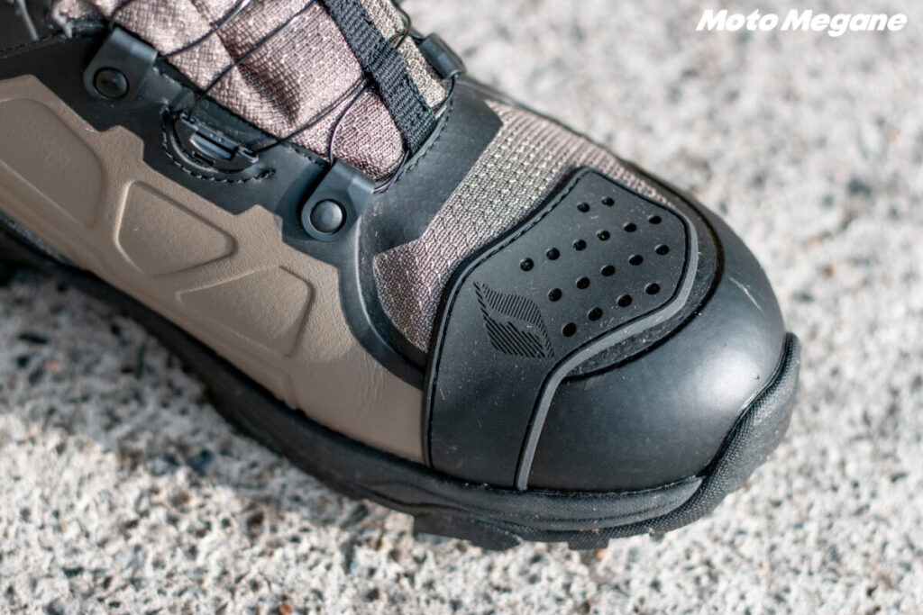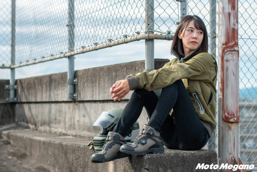 タクティカルライディングブーツよりもちょっぴりアウトドア要素を強めたフィールドライドシューズは、シューズ丈となった事でさらに色々なアイテムに合わせやすい。こちらは写真のオリーブ以外にもグレーとブラックの3色がカラー展開しているので、自分のバイクや手持ちのパンツに合わせてじっくり吟味したいですね!