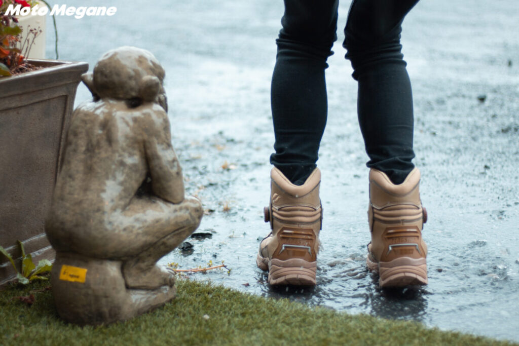 ライディングウェアを選ぶ時に、シンプルな構成でお洒落なアイテムを選ぶとバイクに乗る上での快適性能はある程度は諦める必要があり、機能的になればなるほどライディングブーツ色は色濃く出てしまいがち。しかし、バイクで行きたいお洒落なカフェや街中ではライディングウェア然としたアイテムってどうも目立ってしまうんですよね。そんな時にもこのタクティカルライディングブーツなら、ミリタリーライクなハードな見た目には実用性を伴った機能美を詰め込みつつも、一般的なスポーツテイストのライディングブーツとは一線を画した雰囲気でライディングウェアはもちろんのこと、意外とカジュアルな服装に組み合わせてもお洒落に履きこなせてしまうんです…!
