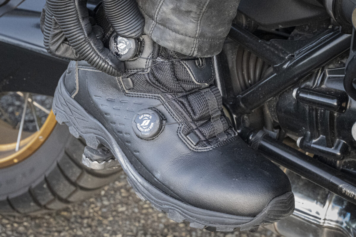 筆者の足は幅広で甲高なので、既存のライディングブーツではサイズ選びに苦労するのですが、ストラテージ・ショートブーツはどんな足の形でも自在にフィットさせられるフレキシブルさを備えているのです。