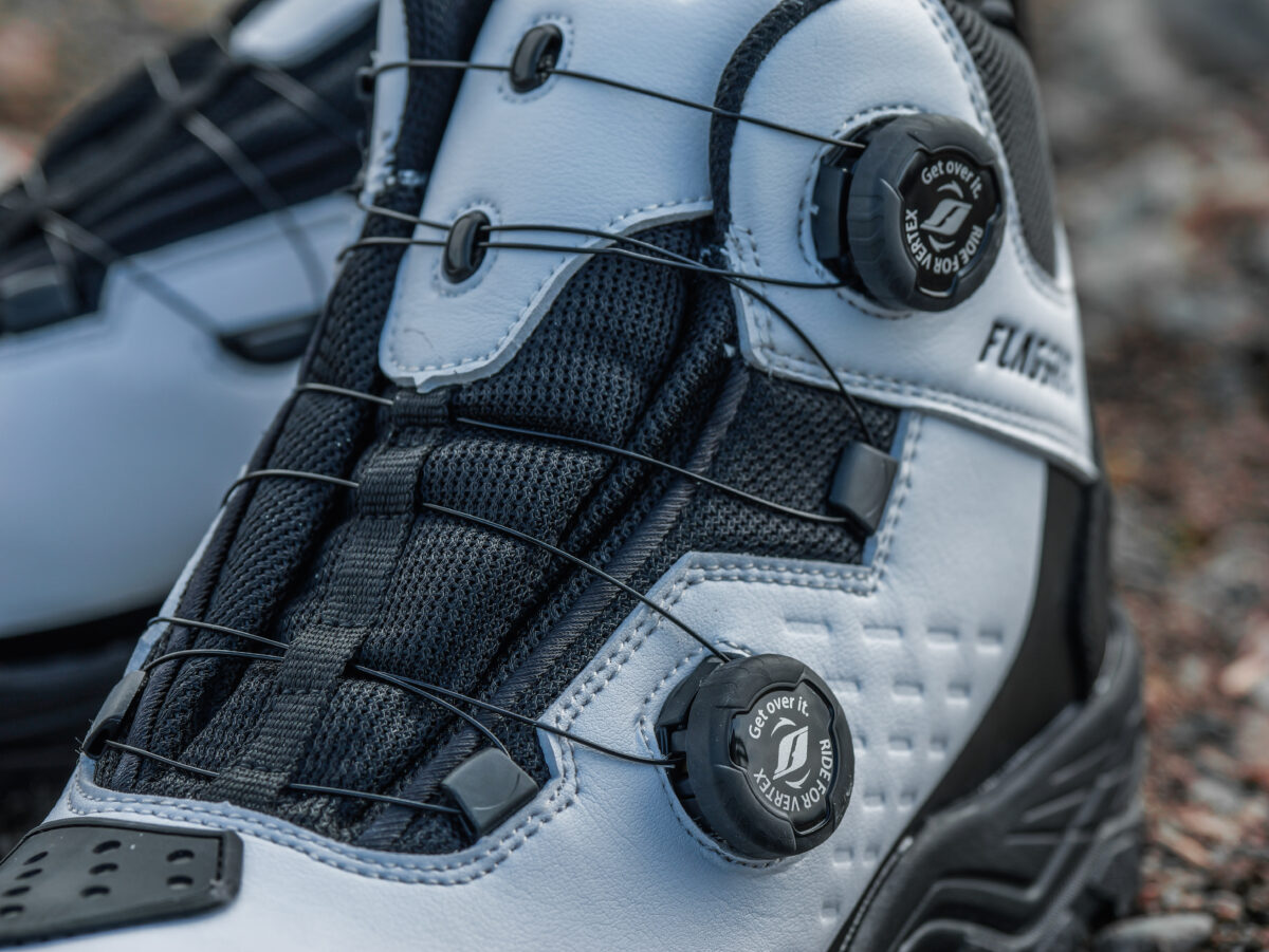 グローブをつけたままでも操作しやすいリールシステム”SPIN-ON”も健在で、一足につき2箇所に採用されているので、タクティカルライディングブーツほど丈はないものの、遜色のないフィット感が実現されている。