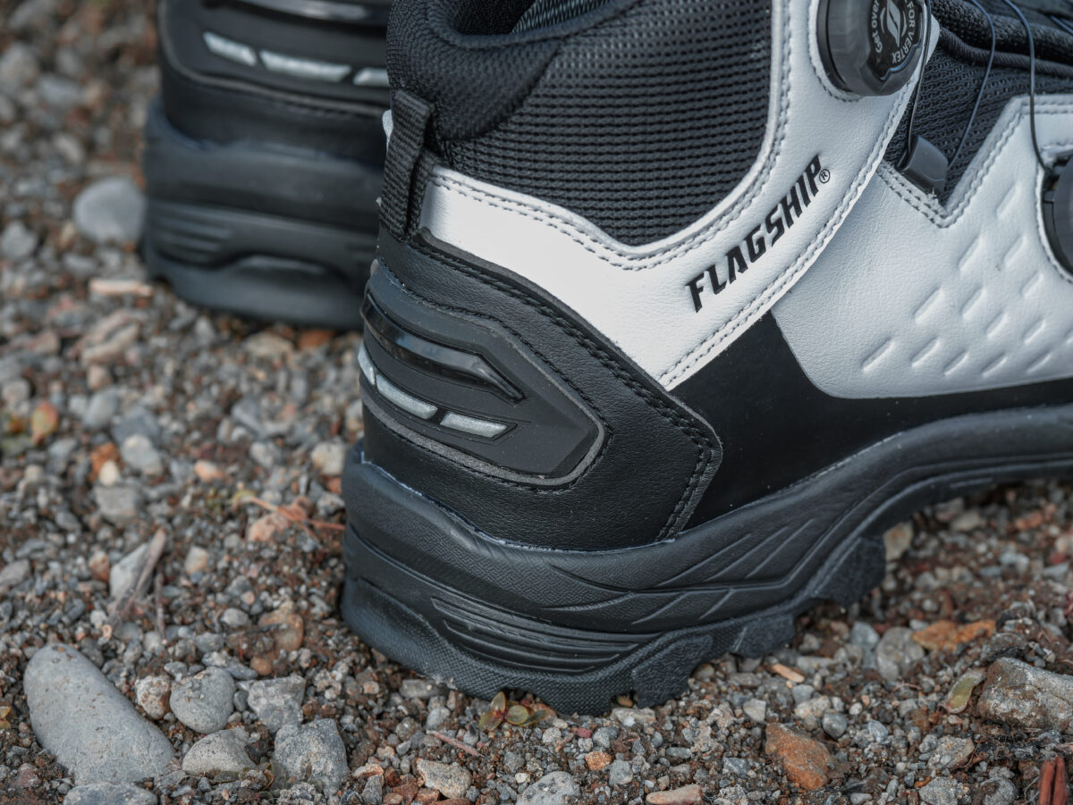 また、ショート丈となってもくるぶしのプロテクションはしっかり入っており、かかとのプロテクション部にはリフレクターが装備されているので、快適性だけでなく安全性もしっかり確保。