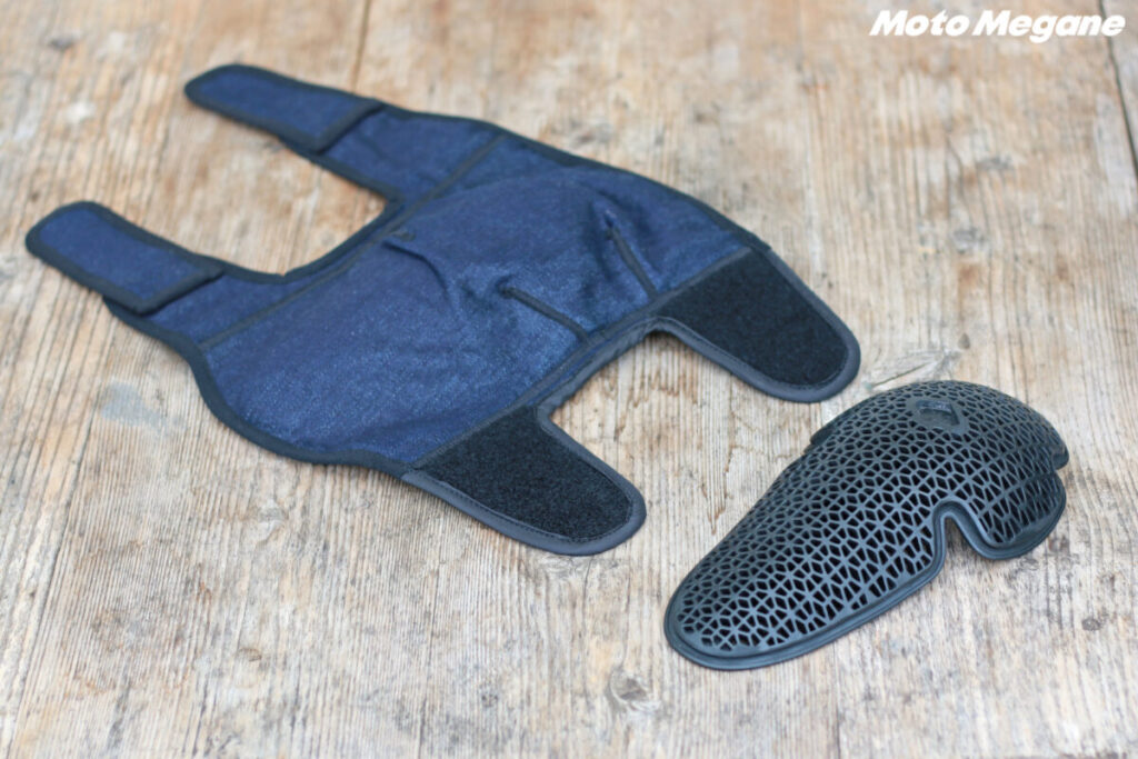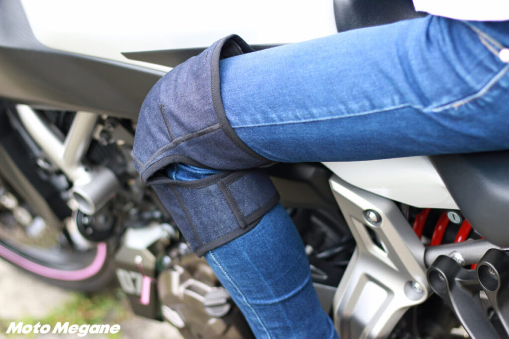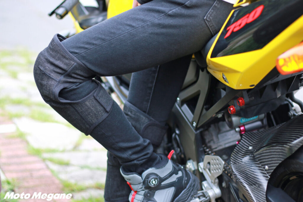 実際に使ってみると、内蔵されたプロテクターがエアスルー形状になっていることで着け心地が軽いだけでなく、通気性も良いので膝だけムレたりするのを防ぐことができる。バイクを運転している時もニーグリップがしづらくなったりすることがなく、万が一に備えて普段着の上から手軽に安心性を確保できる使い勝手がとても良かった。さらに、カラーはインディゴとブラックの2色がラインナップされており、手持ちのパンツや気分に合わせて選ぶことができるのに加えて、サイズについても今回私が着用したMサイズとひと回り大きなLサイズが用意されているので、女性から男性まで性別・体格問わず幅広いライダーにオススメできるアイテムとなっている。