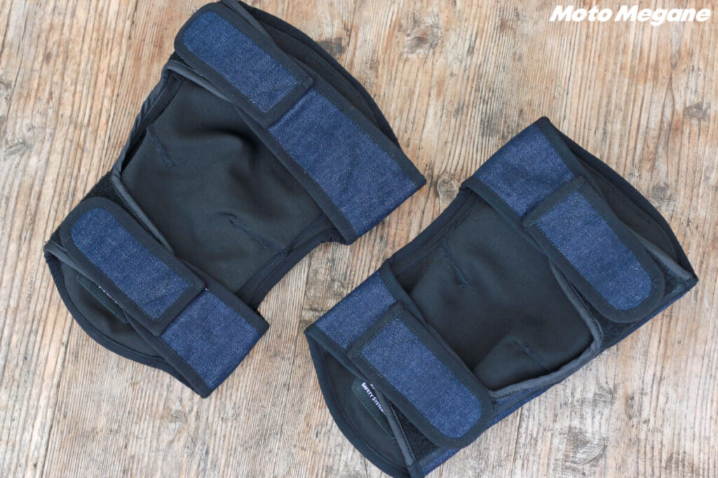 アウタープロテクターと聞くと、やはりどうしても自動車教習所でレンタルすることができた仮面ライダーのようなプロテクションを思い浮かべてしまうのは私だけじゃないはず。しかし、今回紹介するCE2 アウターニープロテクターは普段着の上から巻きつけるタイプのプロテクターでありながら、普段着の上に装着しても目立ちにくいデニム生地を採用しているので、見た目に野暮ったさが一切ないのが大きな特徴。また、伸縮性の高いストレッチコットンを使っているので膝にぴったりフィットして、乗車中や街歩きをしてもズレにくいというのがポイント。