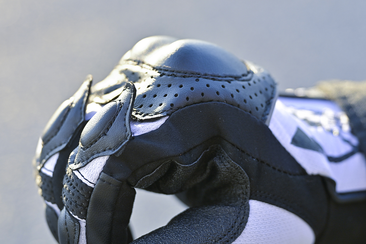 さらに指の間から走行風が抜けるようになるなど、通気性もアップ。フローティング化したナックルプロテクターの下もメッシュ素材を採用したため、熱や湿気がこもらず快適な使用感を実現している。