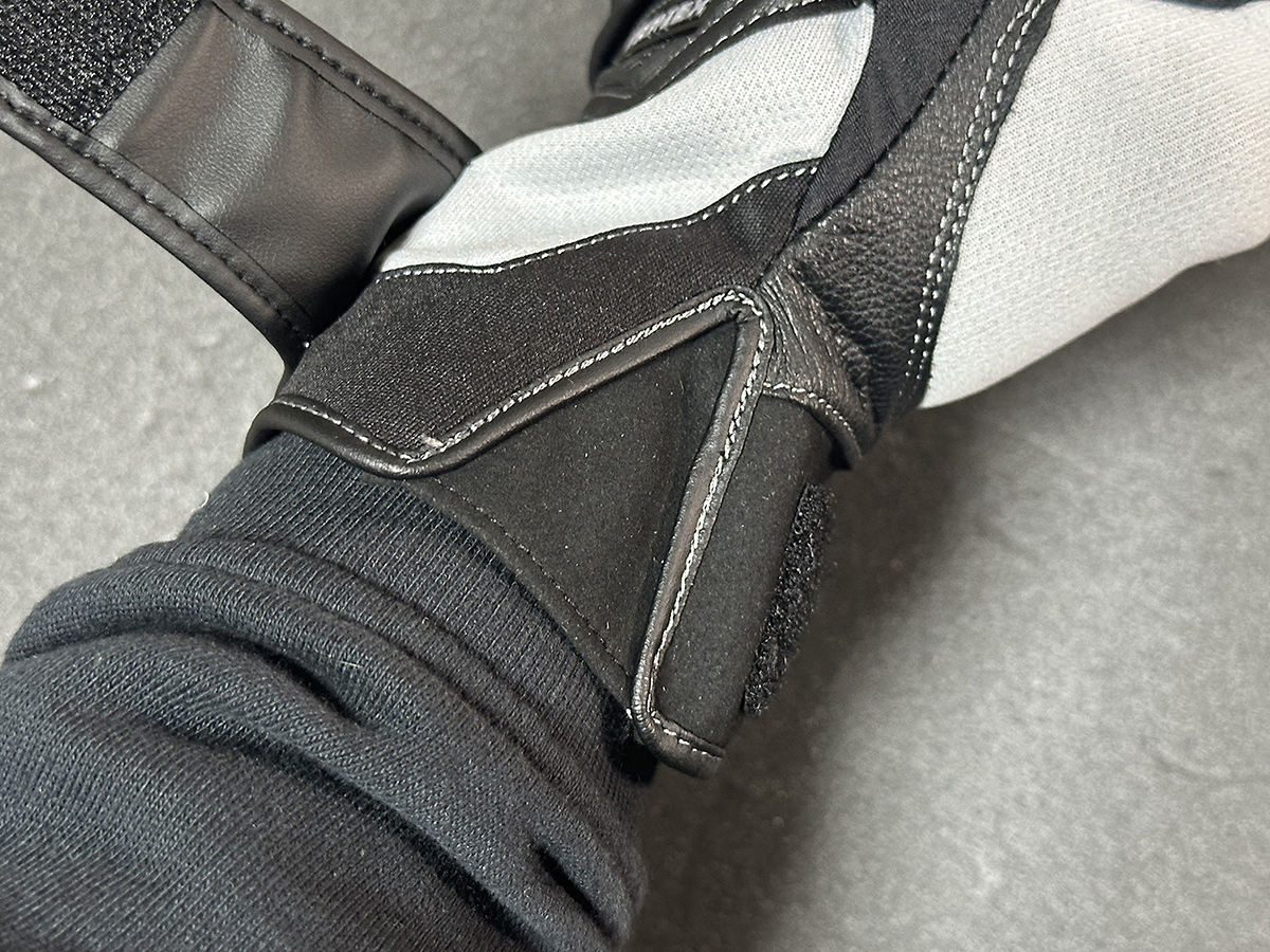 それによってナックルプロテクターが引っ張られにくくなり良好なフィット感が得られるのだ。