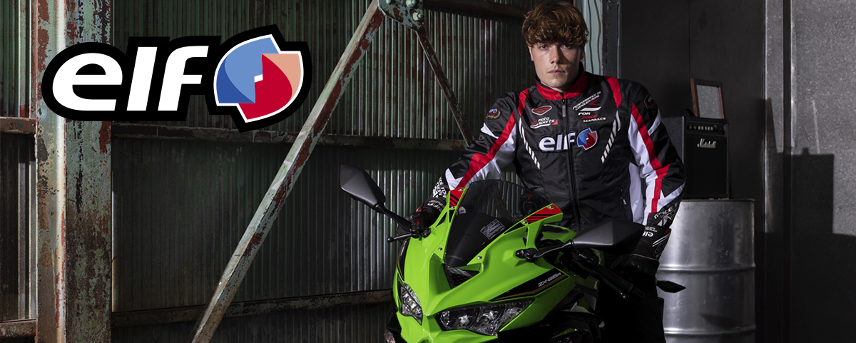 バイク用品の量販店に行くと、ジャケットやグローブ、シューズなどで目にするelf(エルフ)。フランスのオイルメーカーで、そのロゴマークはF1やMotoGPなどモータースポーツの世界でもお馴染みだ。