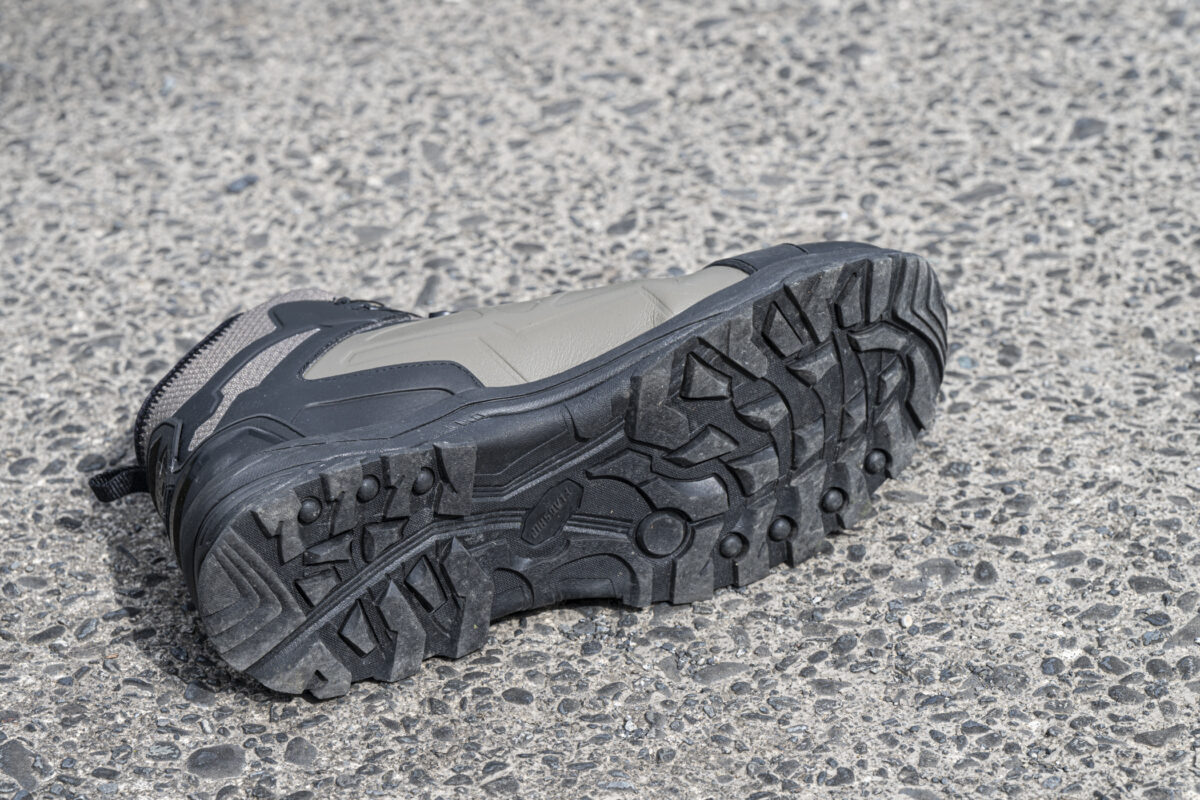 ツーリングに出かけた先でバイクを停めて付近を散策したりする際にも頼もしいフィールドライドシューズのソール。スニーカーのように歩きやすく、足場の悪い場所でも非常に頼もしいグリップを発揮してくれます。こちらは最近撮影したソール。パターンもしっかり残っていて、まだまだ数年は使えそう。