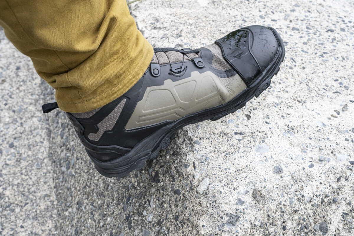 筆者が使用したのは、フィールドライドシューズの人気カラーのオリーブです。パンツの色やタイプを問わず合わせやすいアースカラーは、ちょっとしたミリタリーテイストも感じられます。