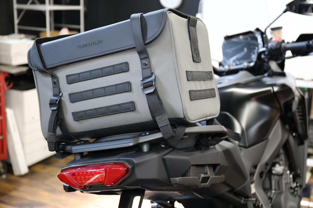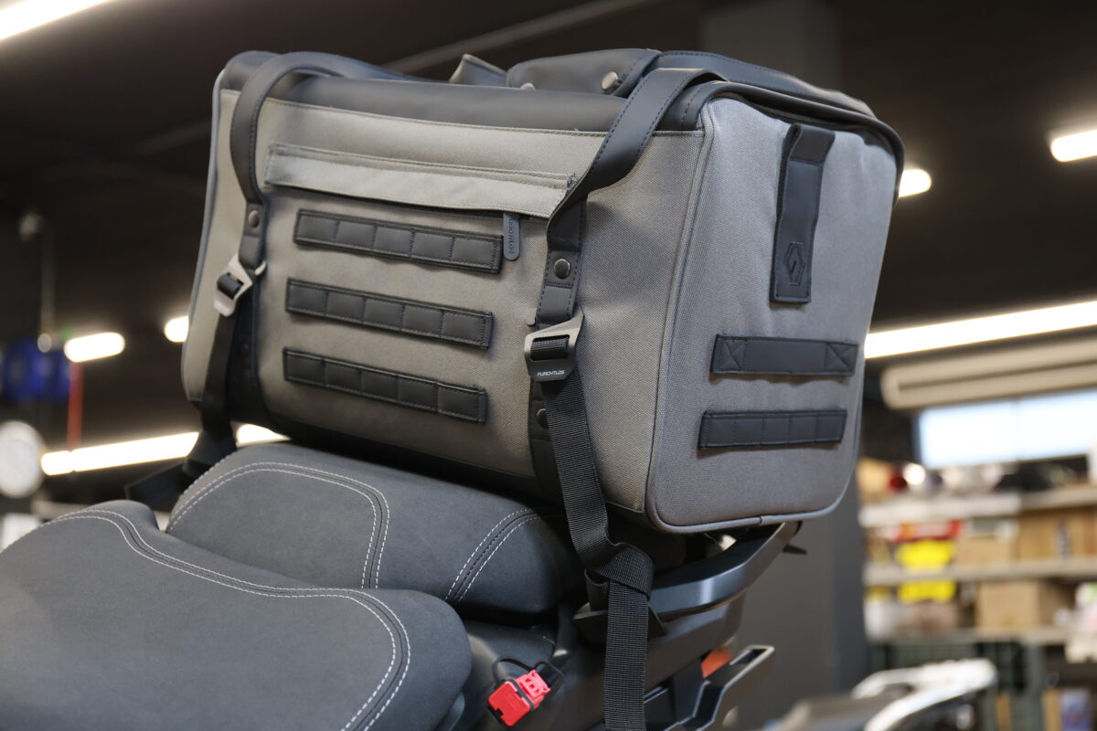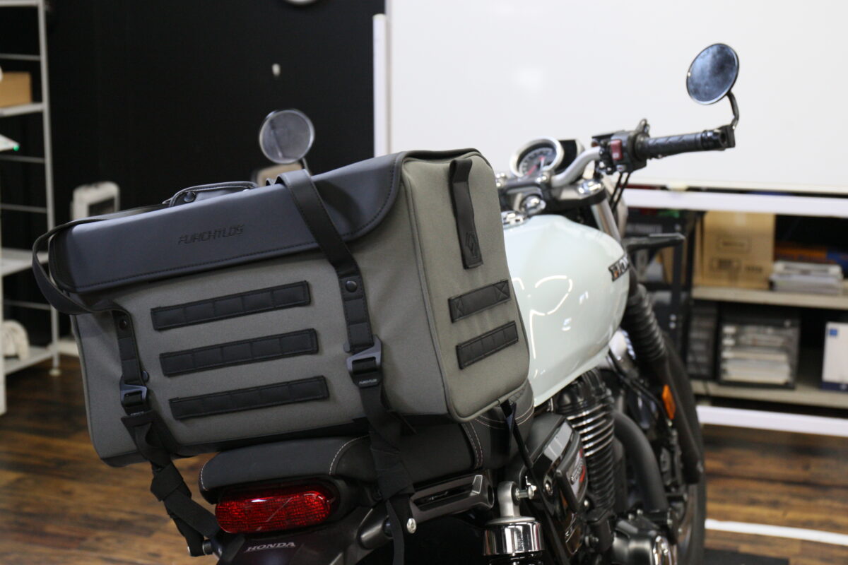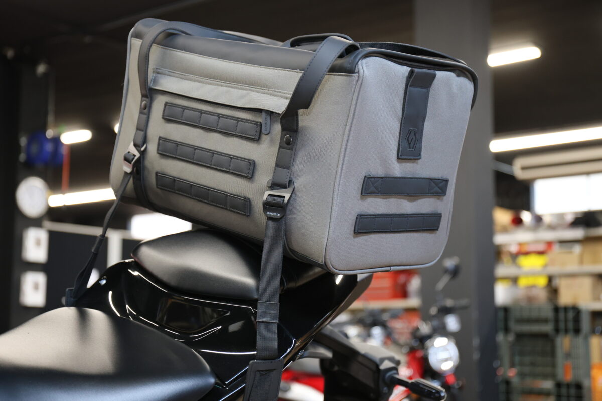 このデザイン性という点で大きなインパクトがあり、さらに収納のしやすさという点やクッション性などの機能面でも優れていると感じたのが「FURCHTLOS(フルヒトロス)」のレガシーダッフルバッグシリーズだ。フルヒトロスはドイツのバイク用バッグとケースのブランドだけあって、シンプルな汎用性の高いヨーロピアンテイストのデザイン。例えバイクを買い替えるとしても、続けて使用しても違和感はないだろう。もちろん取り付け方法も汎用性が高く、ほとんどのバイクに使える。まさに一度購入すれば、“レガシー(遺産)“になるというワケだ。