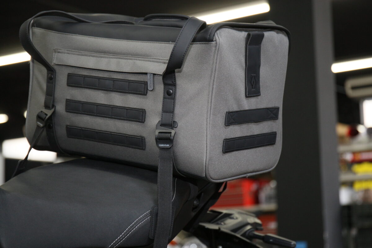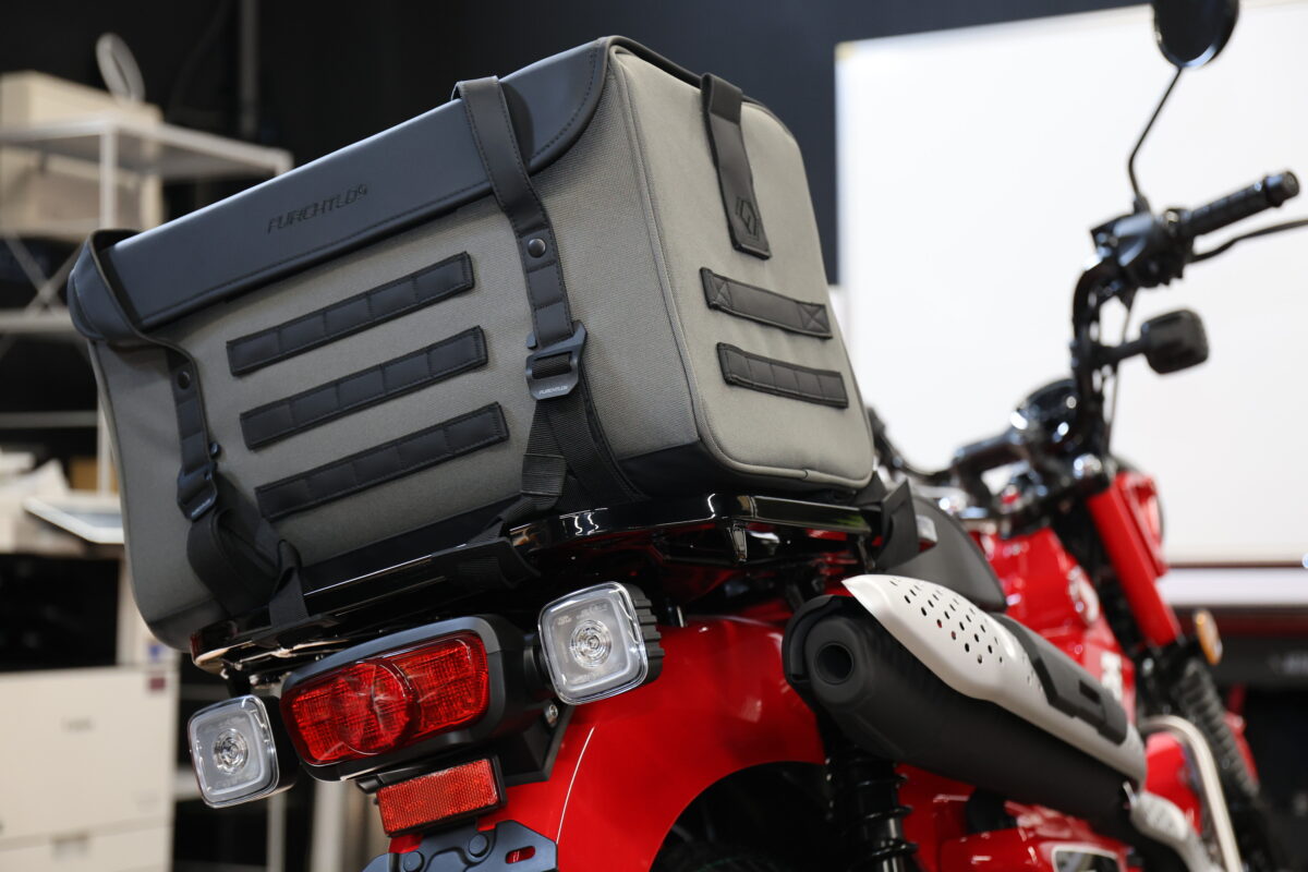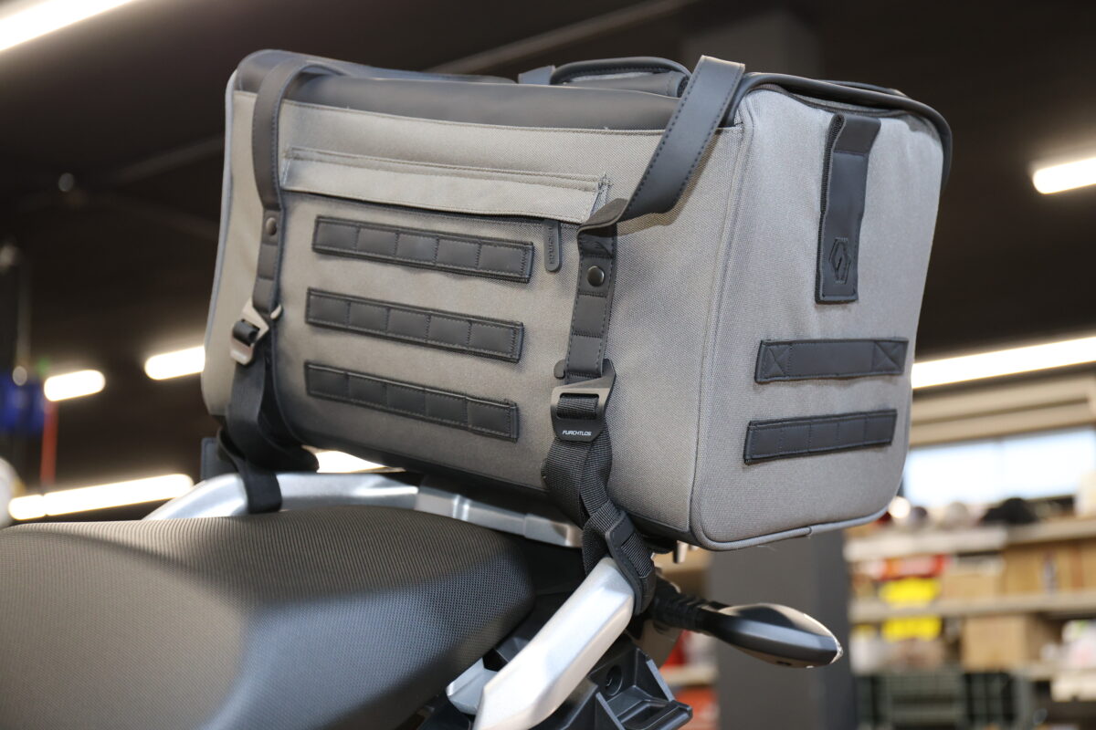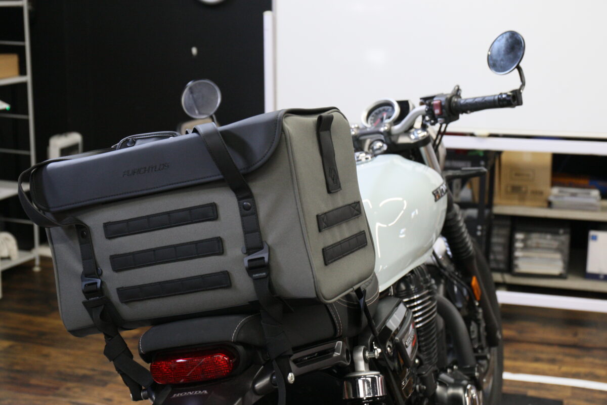 このデザイン性という点で大きなインパクトがあり、さらに収納のしやすさという点やクッション性などの機能面でも優れていると感じたのが「FURCHTLOS(フルヒトロス)」のレガシーダッフルバッグシリーズだ。フルヒトロスはドイツのバイク用バッグとケースのブランドだけあって、シンプルな汎用性の高いヨーロピアンテイストのデザイン。例えバイクを買い替えるとしても、続けて使用しても違和感はないだろう。もちろん取り付け方法も汎用性が高く、ほとんどのバイクに使える。まさに一度購入すれば、“レガシー(遺産)“になるというワケだ。
