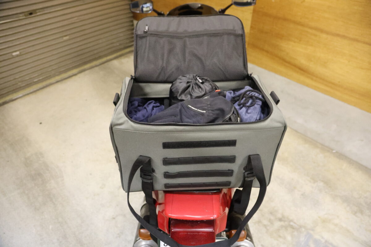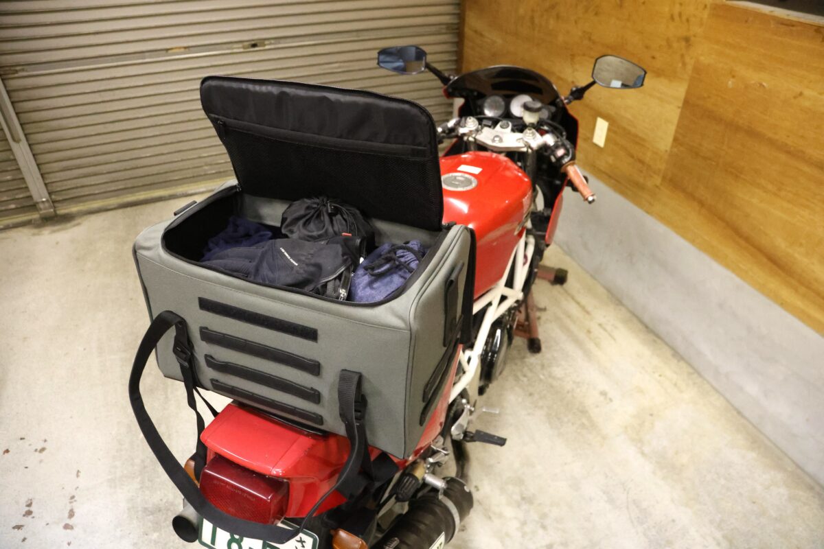 ロングツーリングに行くとなれば、さらにハードルは上がる。着替えや多めの工具類、レインウエアから予備の防寒グッズなど、移動距離が長いほどに荷物は多くなる。なるべく身体に付けないのであれば、バイクに付けることになる。出し入れのしやすさや収納のしやすさ、ライディングへの影響が少ないという点なども考慮すると、シートバッグが最もオススメだ。