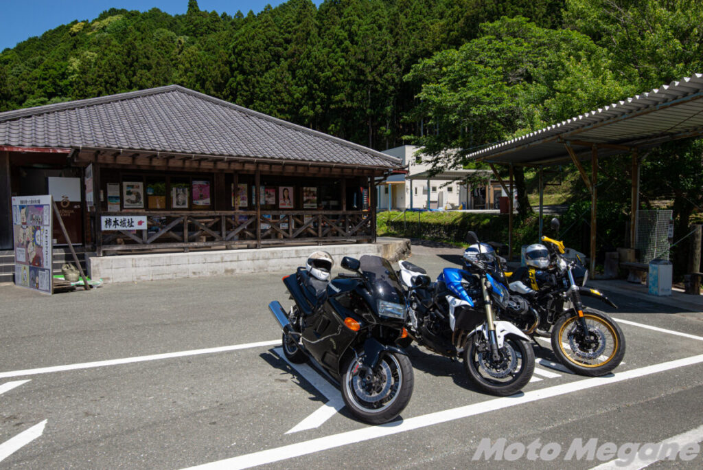 今回のツーリングは愛知県新城市の「道の駅 鳳来三河三石」に集合して、静岡県の浜名湖を目指すというショートツーリング。岩井と私ツチヤマは東京からそれぞれ新東名高速道路を使って現地へ向かい、3-4時間ほどかけて「道の駅 鳳来三河三石」に到着しました。