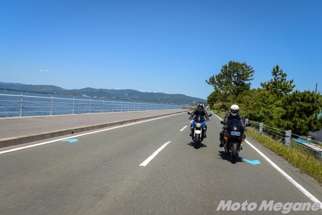 道の駅を出発して2時間足らずで一行は浜名湖へ到着! これ以上ないほどのツーリング日和とあって、浜名湖の美しい風景を堪能できました。
