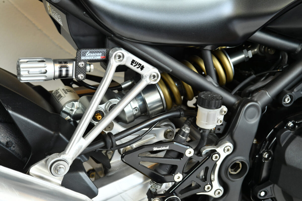 「このZ900RSにはオーリンズTTXをベースに開発したリヤサスも装着しています」