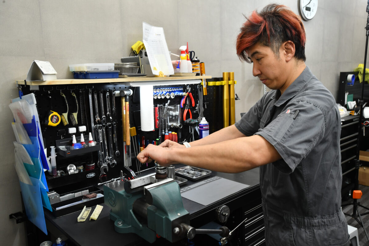 全日本ロードレース参戦チームもサポートし、その技術力は多くのトップライダーから厚い信頼を得ているが、G sense代表の舟橋 潤さんは「初心者や、ライディング技術に不安を感じている人こそ、自分に合ったサスペンションに乗ったほうがいいです」と言う。
