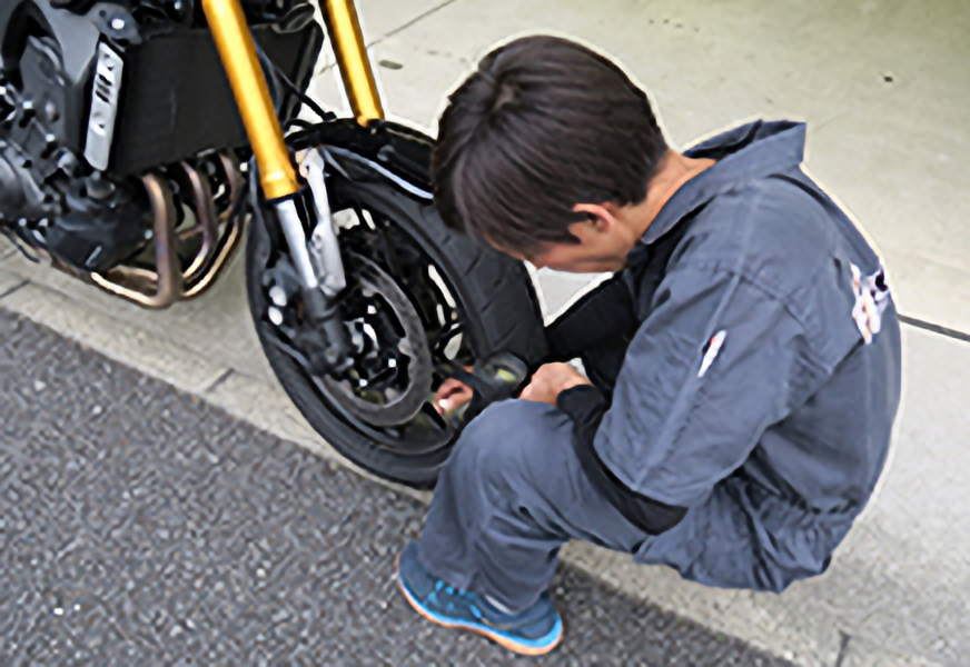 その取っ掛かりとして『試乗セットアップ』というプログラムを行なっています(所要時間は約2時間、料金は8800円。予約制)。ライディングポジション、前後サスのバランス、舵角の入り方、どんなバイクに乗ってきたかといったことをユーザーさんとカウンセリングし、バイクとタイヤの状態を確認してから、僕がユーザーさんのバイクを試乗します。