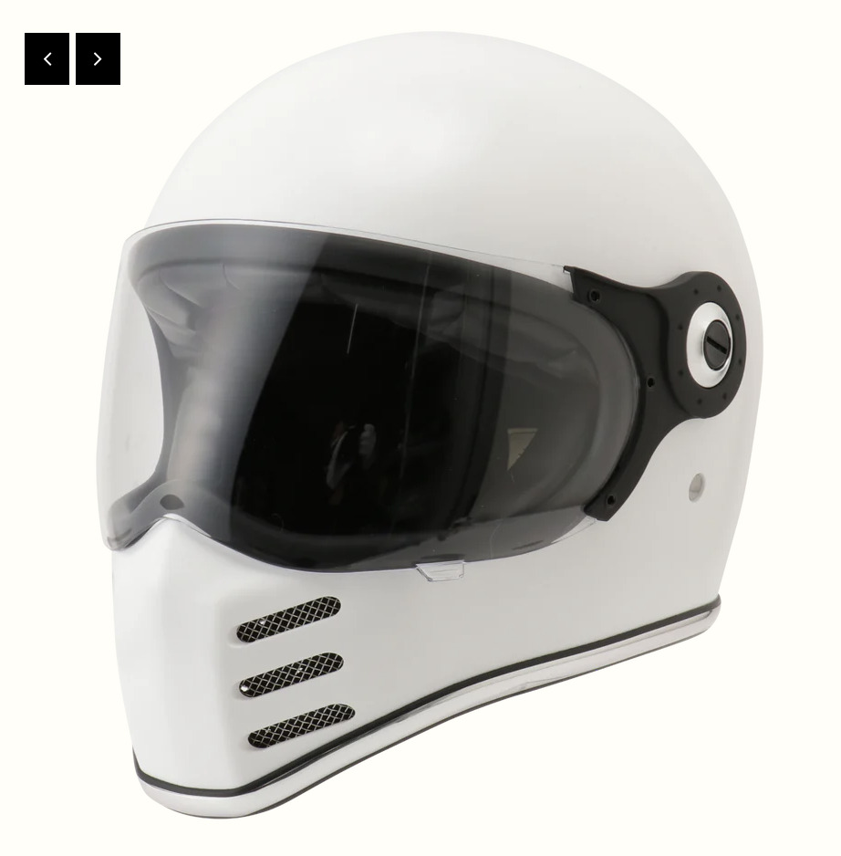 NEW&OLDな雰囲気を持つ現代のネオクラシックフルフェイス。過酷な荒野の走行でも快適性を保ち、安定して走り続けることができる。オプションでスモークやミラーシールドが用意されている。