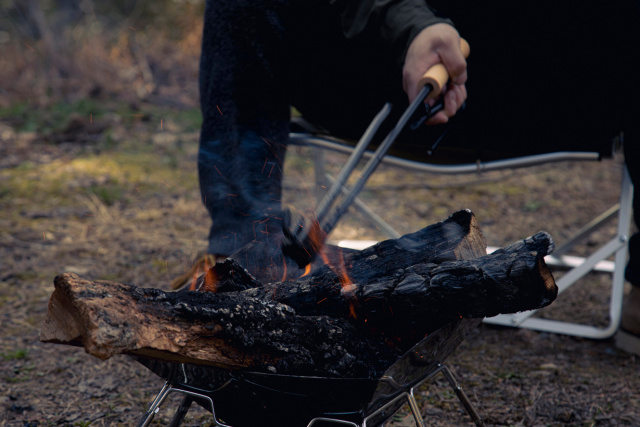 強度もあるため、大きな薪が炭化し小さく分けたい時には、先端を使って薪を叩けば小さく割ることも可能だ。