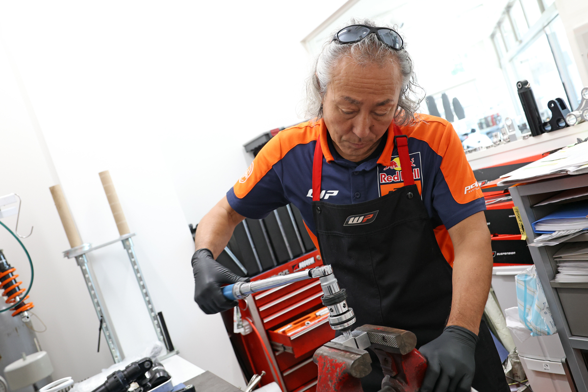 「我々の強みは、ショップ内に設けたWP専用ラボですべての作業が自社で完結できるところ。また、各モデルごとのオリジナルパーツをストックしており、オーダーメイドに近い状態でユーザー個々の体格や要望にきめ細やかな対応が可能です。加えて、ローシャーシ仕様の試乗車を公道だけでなくサーキットでも走らせ、高速域までの幅広いスピードレンジでサスペンションが機能することを検証しています!」