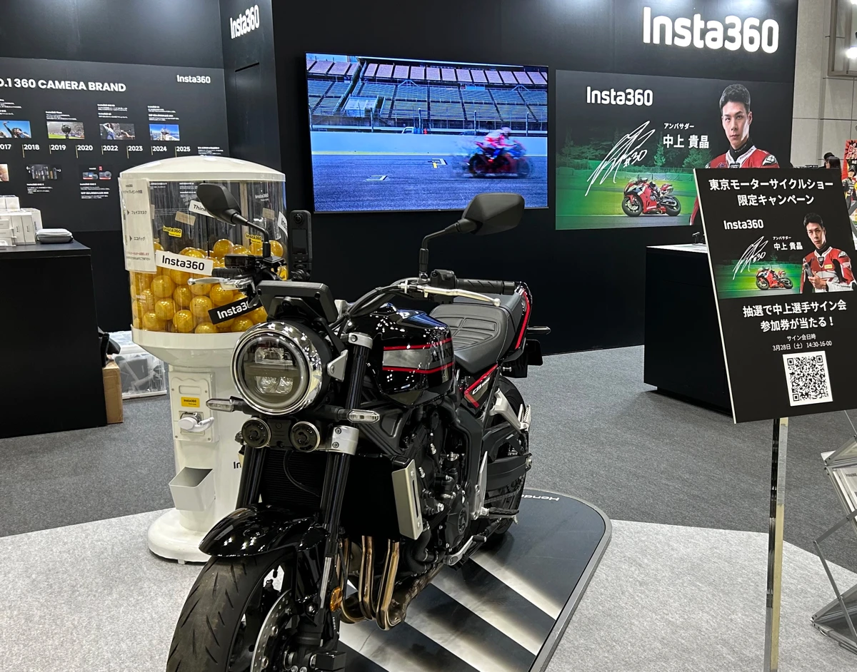 …ってことで、今回はそんなInsta360ブースで見つけた注目の商品と当日の様子を、ライダー目線でじっくりとレポートさせていただきます。