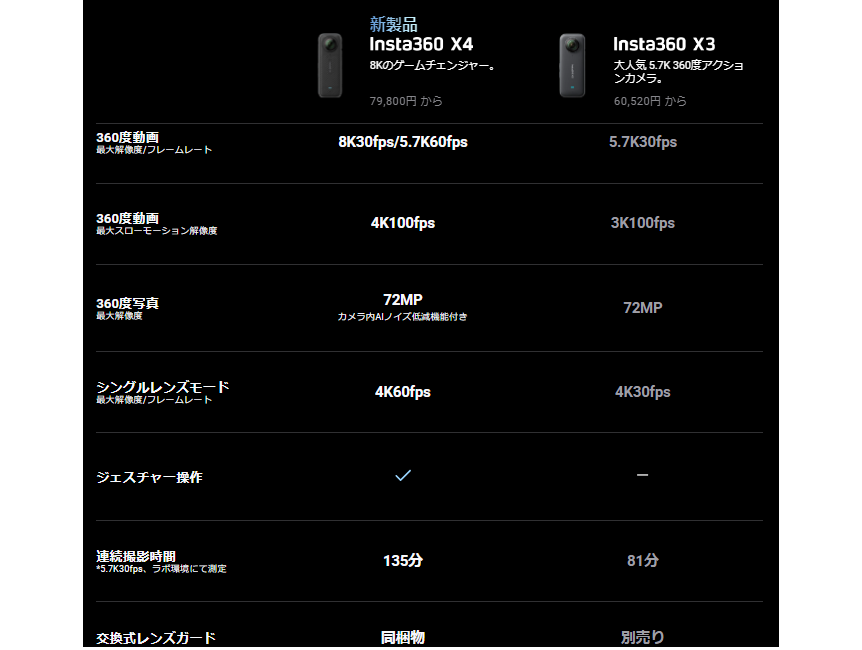 バッテリー容量を拡大し、8K撮影も可能にした360度カメラ