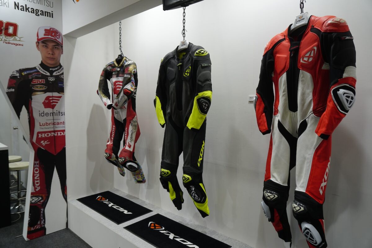 そのIXONが今年も東京モーターサイクルショーにブースを出展。IXONブランドの雰囲気を感じてもらうために、唯一のMotoGPライダー中上貴晶選手のレザースーツをはじめ、最新のストリート向けアイテムまで、IXONのさまざまなスタイルが提案されていた。