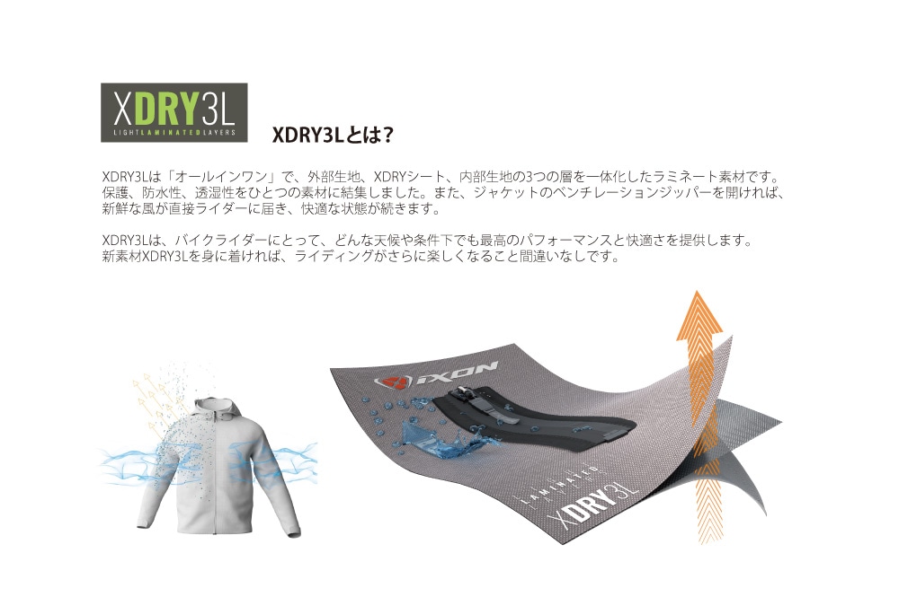 そして最大の特長は、通気性・防水性という相反する要素を高次元で実現した特殊素材「XDRY(エックスドライ)3L」の採用だ。