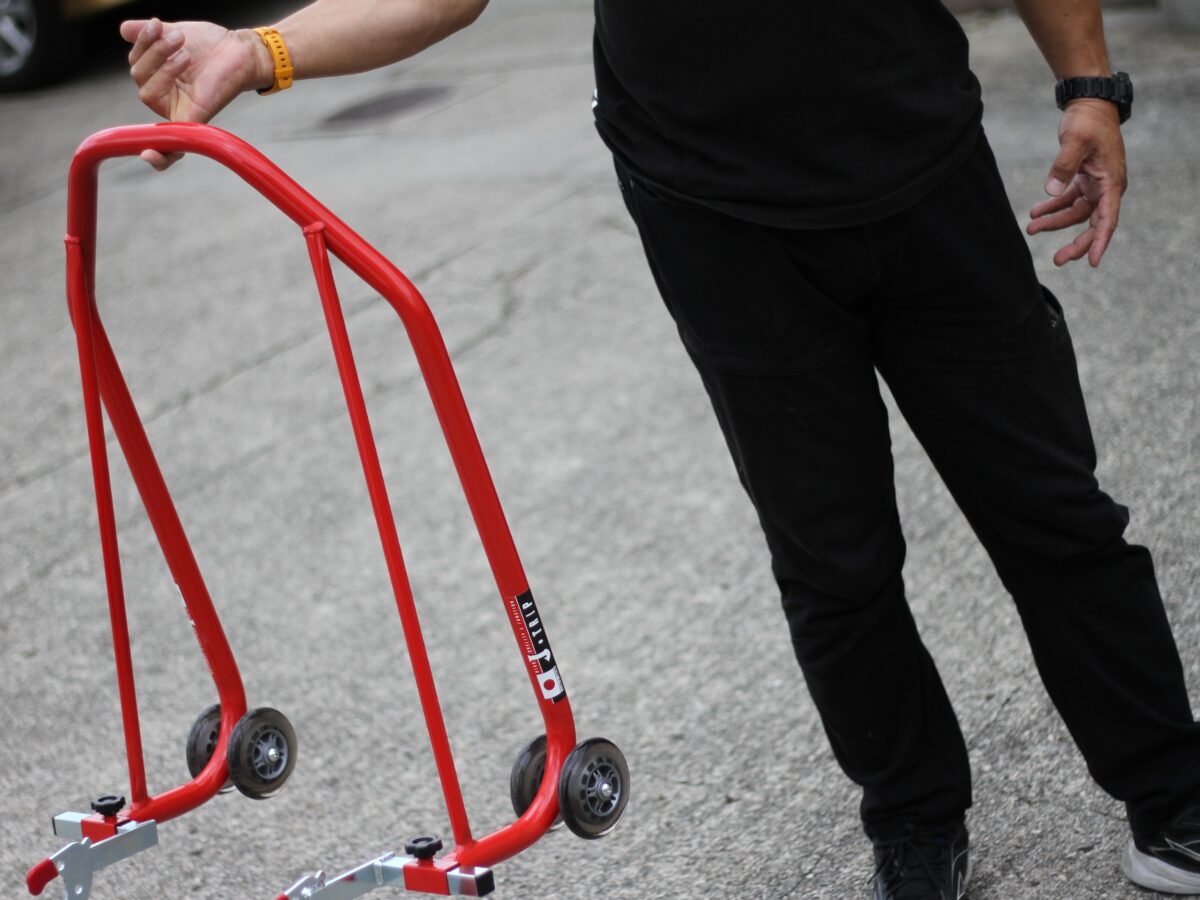 メンテナンスは愛車との会話みたいなものです。でもチェーン調整やホイールの清掃、タイヤ交換ってバイクを浮かせないと難しいじゃないですか。そうした背景があって、今回新製品を開発しました。