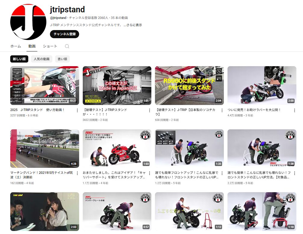 弊社のメンテナンススタンドは機能最優先で設計しています。軽い力でリフトアップできることはもちろん、愛車を立てた状態で大きな力を加えてもビクともしない安定性はぜひ体感してほしいですね。詳しくはJ-TRIP公式Youtubeにて配信しています。ぜひチェックしてみてください。