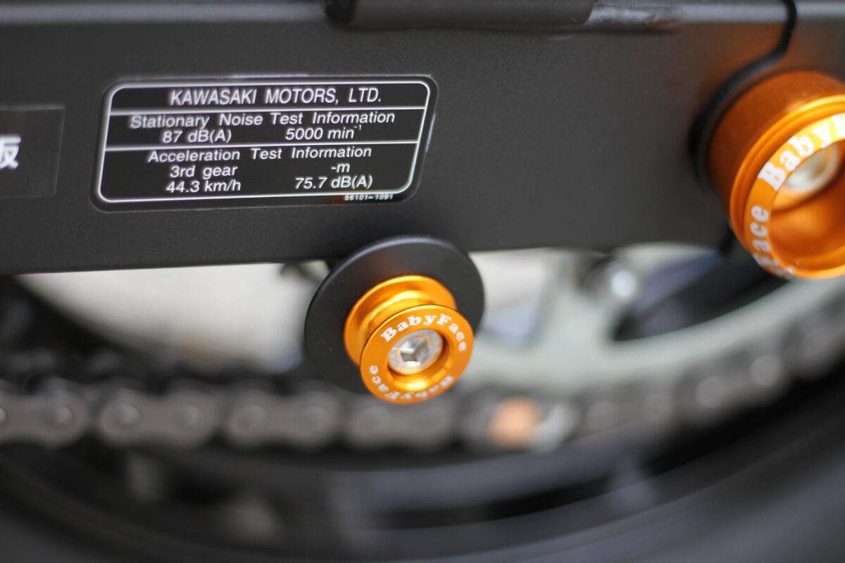今回はBabyFaceさんのスタンドボルトを使って撮影していますが、J-TRIPもスタンドボルトは販売しています。でもウチではスタンドボルトは「おまけ」って感覚なんです笑。J-TRIPのV受けは他メーカーのスタンドボルトでも合うように設計していますから、ファッション感覚で好きなメーカー品を使ってください。そして、愛車のチェーンや足まわりをキレイにメンテしてあげてください。「オシャレは足もとから」ですからね。