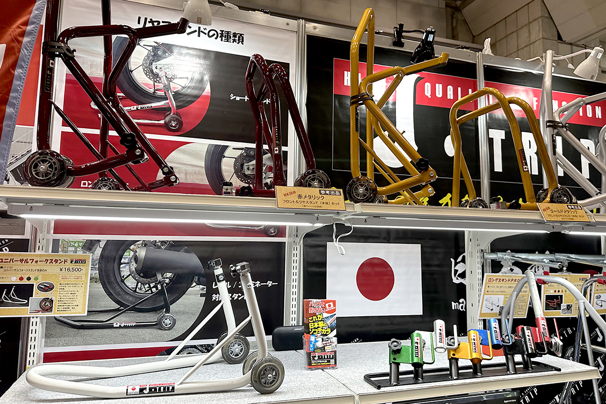 モータースポーツフィールドにおいて名が通っているJ-Trip。代表的なアイテムはレーシングスタンドだが、使われているのはサーキットだけではない。前後をリフトアップして安定した車体姿勢が実現できることから、バイクショップをはじめとしたプロの現場から個人のガレージにまで幅広く使われている。J-Tripの製品が多くの人に愛用される理由は、利用者の目線に立ったきめ細やかな物作りにある。