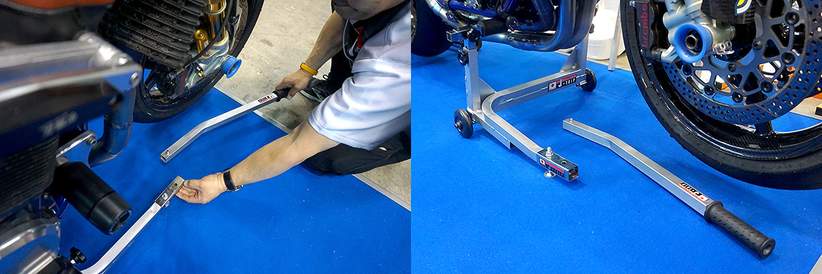 片持ちスイングアームのバイクも楽々スタンドアップ!