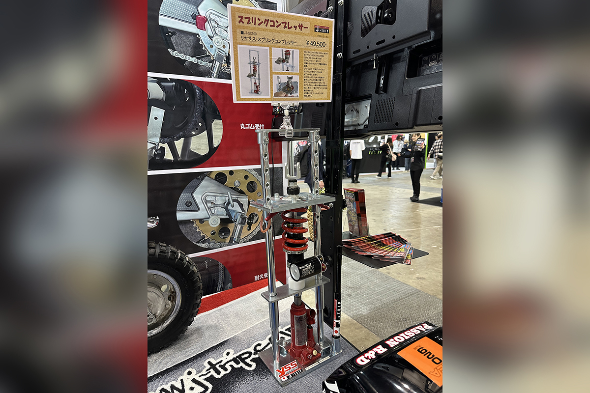 サスペンションをセッティングするとき、強力なスプリングを安全に素早く外すことができるアイテム。50ccからリッターバイクまで幅広い車種のリヤショックに対応している。ガレージやレースの現場でも活躍する実践的な製品だ。