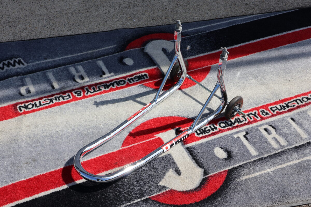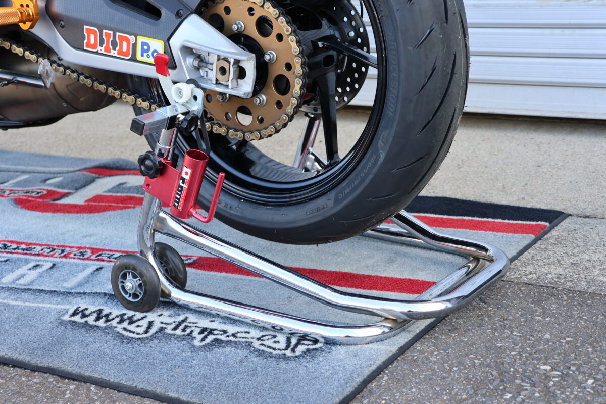 中でもレース現場では、100分の1秒を争うシビアな状況で使用しなければいけない。そんな環境でも壊れることなく使用できるJ-TRIPのメンテナンススタンドが支持されるのは当然と言えるだろう。