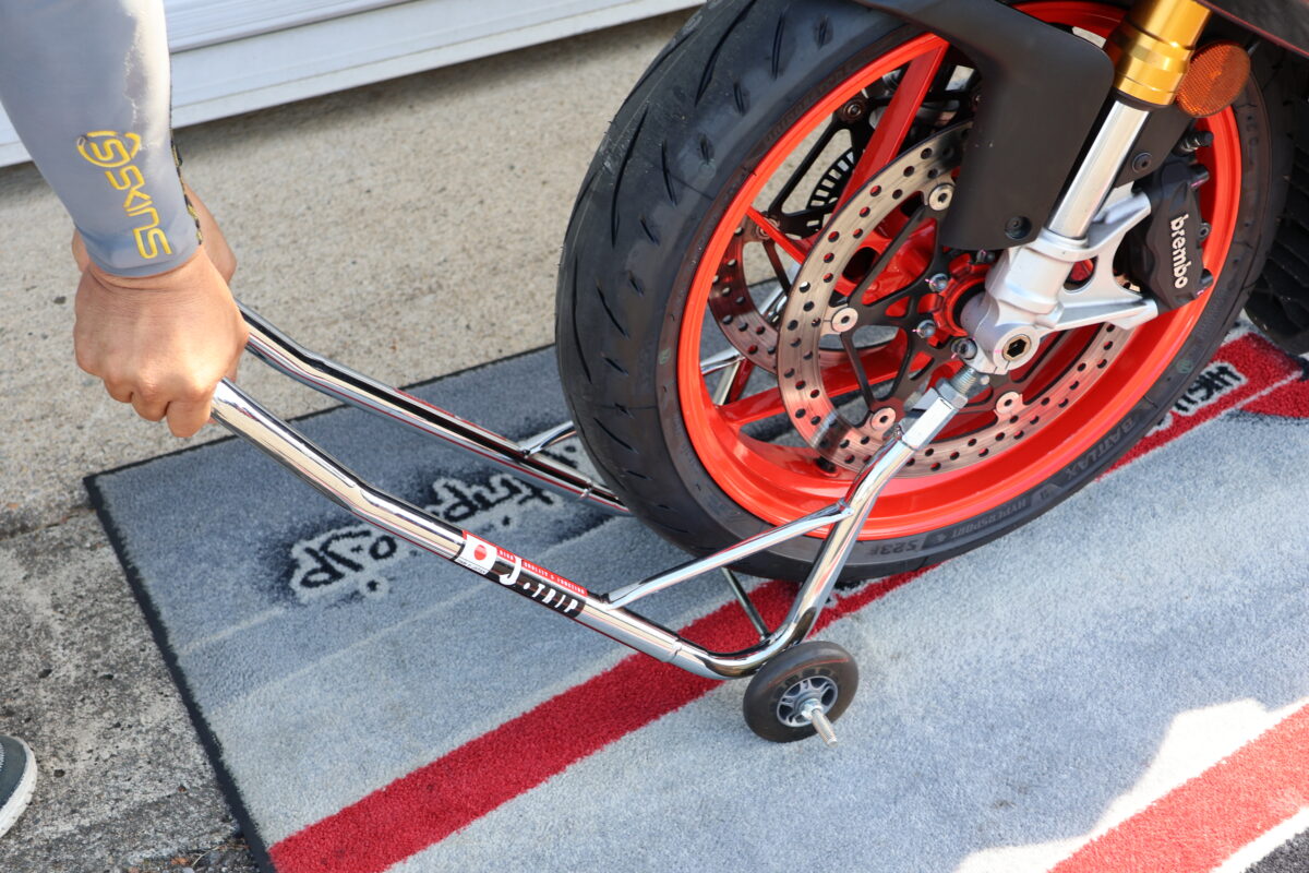 そんなメンテナンススタンドは、リヤ用が一般的で使用している方も多いと思われるが、実はフロント用があればさらに便利になるのだ!