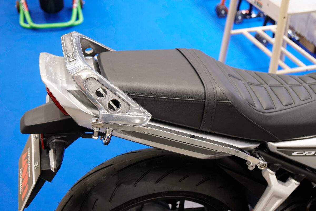 これは、タンデム時につかみやすく、荷物の固定にも役立つ実用性を備えながら、車両のスタイルまで引き立てる“機能美”パーツ。かつてCBX400Fで支持を集めた名作が、40数年の時を超えてCB1000F用として復活したと聞けば、気にならない旧車・ネオクラファンはいないはずだ。