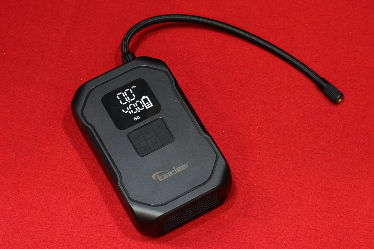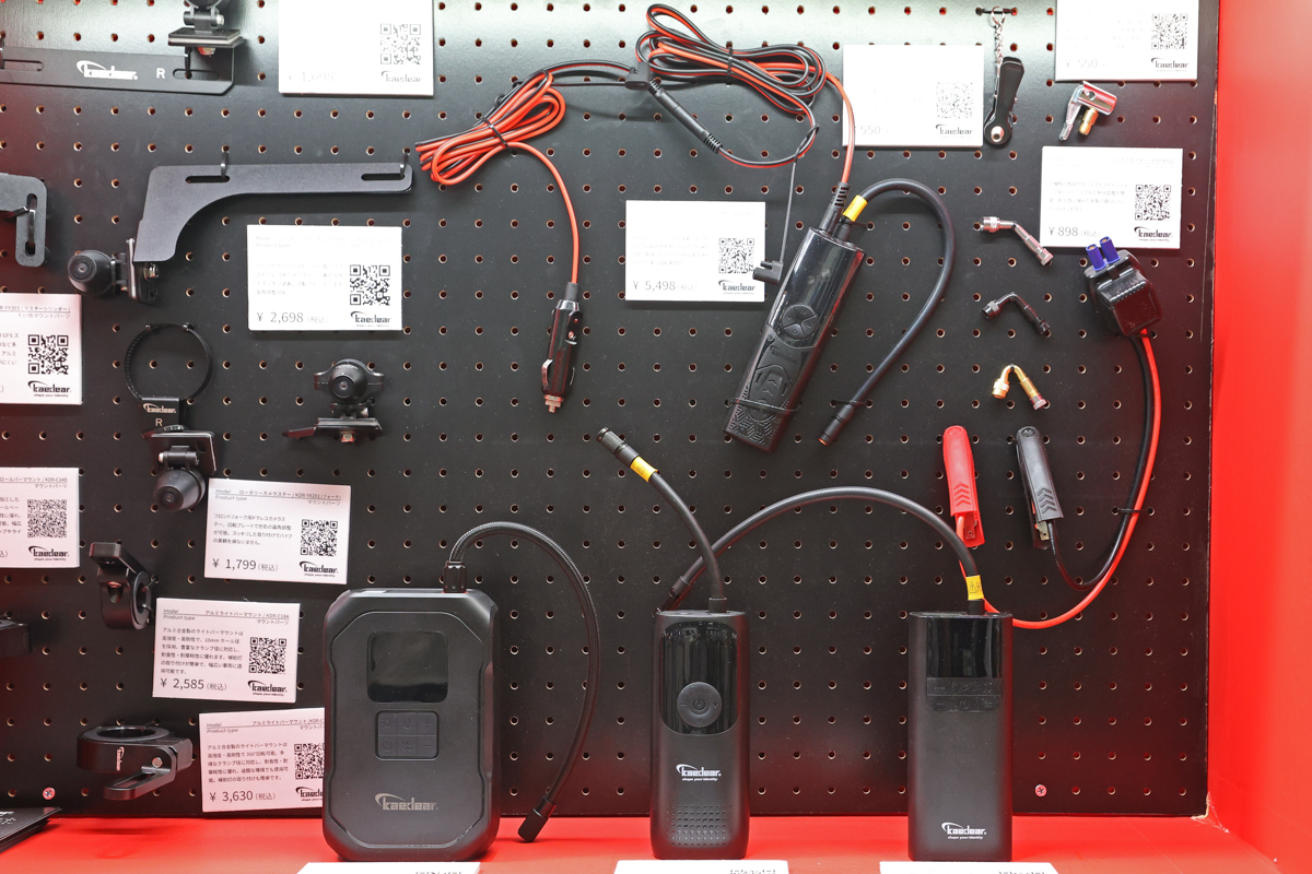 2024年の東京モーターサイクルショーで市販予定品として展示されていたKDR-AP2は、その後に市販化。これ1台でバッテリー上がり時のエンジン始動時に使えるジャンプスターターと、日常の愛車整備に不可欠な電動ハンディエアポンプが一体化されたメンテナンスマシンだ。物理ボタンはグローブをしたままでも押しやすい設計で、付属のブースターケーブルには、バイクに最適化した長めのケーブルと小口径ワニ口クリップを採用している。エアポンプは、任意の指定空気圧まで自動的に充填するタイプだ。
