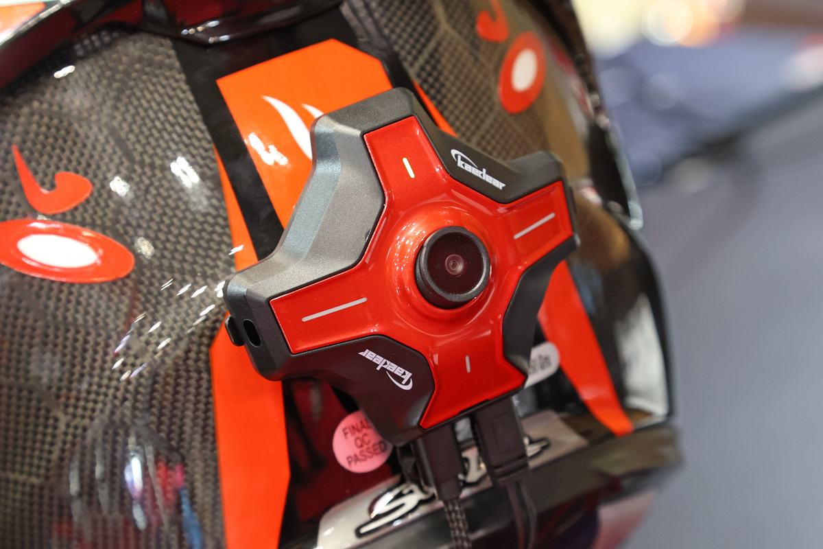 このKDR-BH2は、ヘルメットの右目前あたりに装着する超小型ディスプレイと、後頭部に貼り付ける小型カメラを内蔵した本体、インカム機器などで構成。ディスプレイには、GPSデータから算出した車速、バックカメラ―の映像などが表示可能だ。