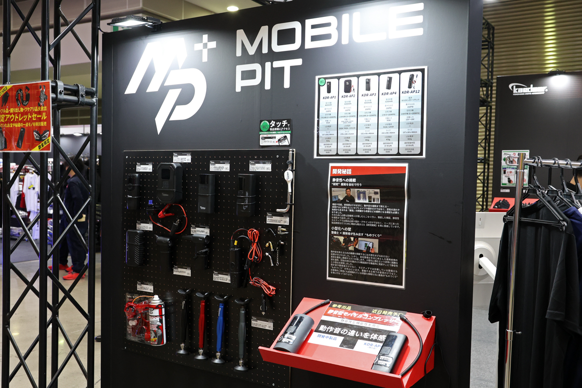 カエディアの製品群には、痒い所に手が届くような、ユーザー目線で開発された機能的なアイテムが多い。そしてこれらを開発・市販して終わりではなく、その後もより利便性などを高めるべく改良を続ける姿勢を崩さない。例えば東京モーターサイクルショー2026では、ロングツーリングや林道走行でも役立つモバイルコンプレッサーの静音型を開発中であることもアナウンス。従来製品と比べて大幅に作動音が低減されており、早朝出発のツーリングでも近所の目を気にせずタイヤの空気圧調整ができそうだ。