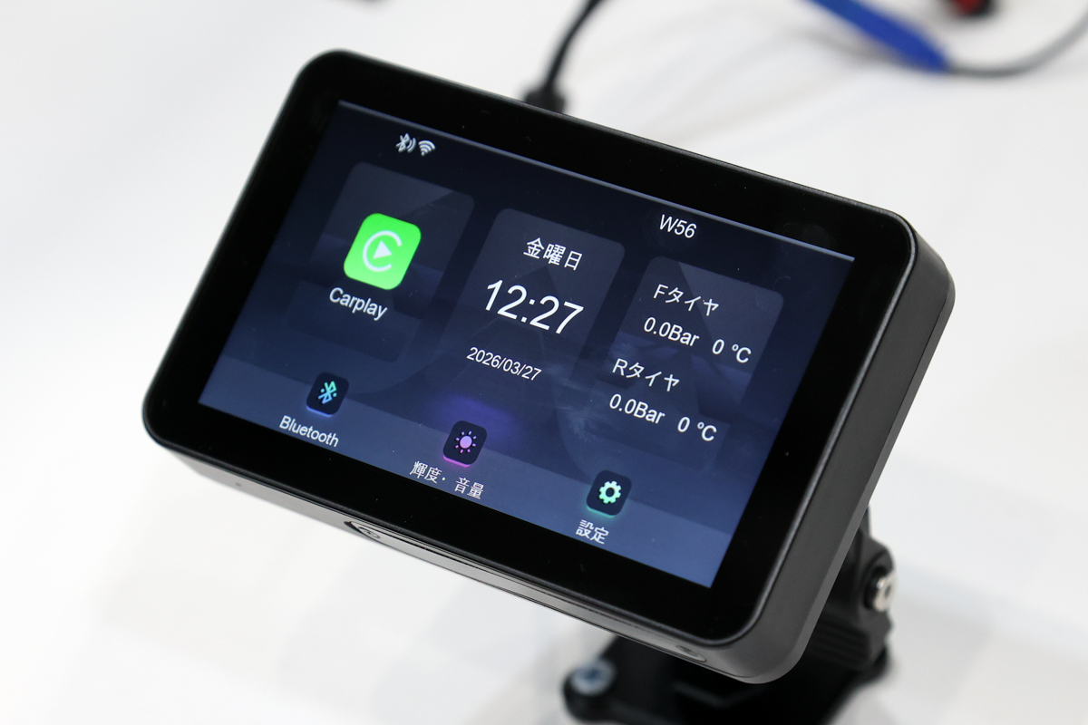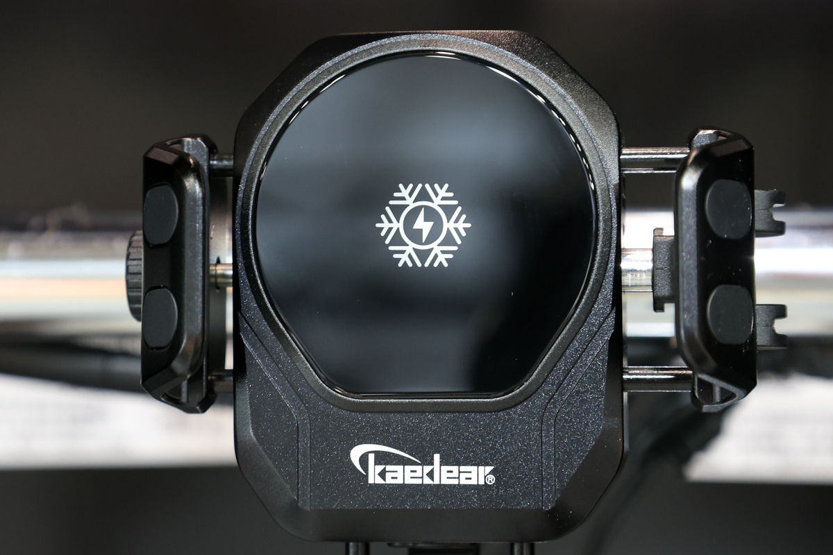 東京モーターサイクルショー2026にギリギリ間に合って初披露されたのが、ペルチェ式充電スマホホルダーのプロトタイプ(KDR-M33AP)。こちらは、ユーザーからのリクエストにより約3年間の開発期間を使って開発され、「2026年夏までの市販化を目指す」とのことだ。