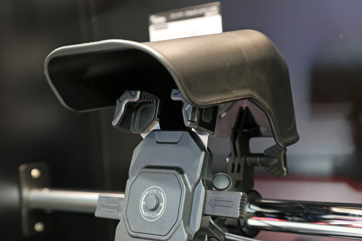 取り付け方法はバータイプ、クランプタイプ、中間マウントタイプの3種類があり、いずれもスマホホルダーのマウントに直接取り付ける一体構造。軽量コンパクトでシンプルな設計により、マウントやスマホホルダーに負担をかけることなく使用可能だ。走行風により、サンバイザー内部に溜まった熱を効率的に排出。日差しを遮ることでスマホの熱暴走を抑止し、画面の視認性を向上させる。