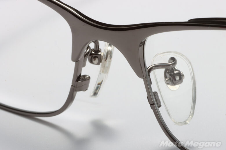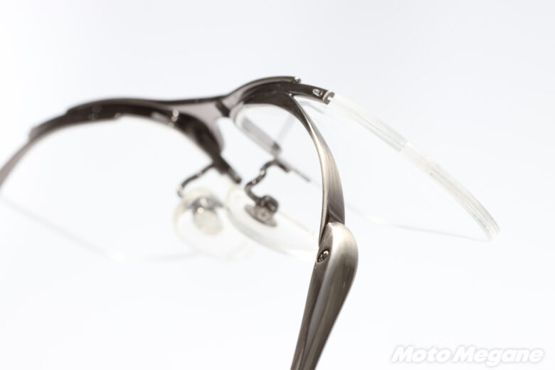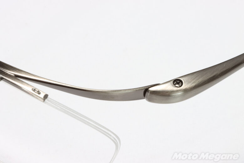 バイカーズグラスでは、左右のレンズを繋ぐ「ブリッジ」と呼ばれる部分は剛性に優れたチタンキャストのパーツを使うことで歪みを防止。さらにシャープなフォルムにすることで、デザイン性を高めることに成功している。