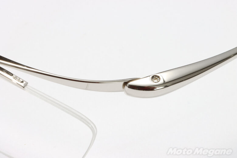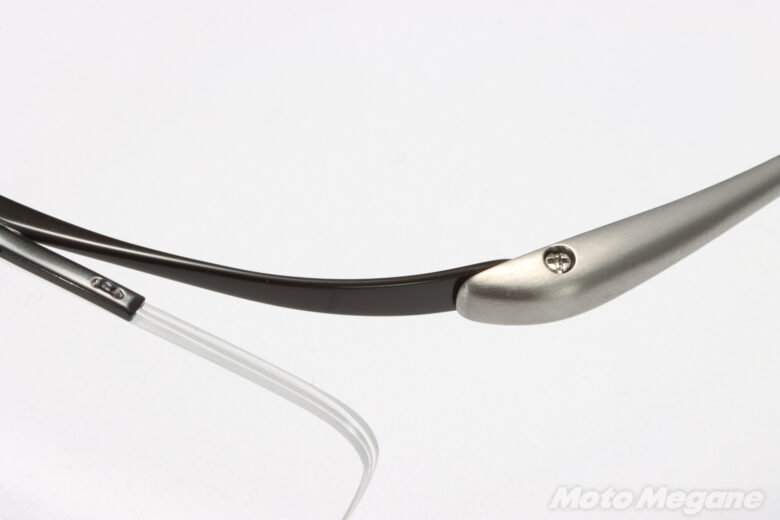 ブリッジの部分は他のモデル同様チタンキャスト製となる。異なるチタン素材の溶接部分の強度とフレーム全体の精度を求めるため、国産の鯖江工場製にこだわっている。