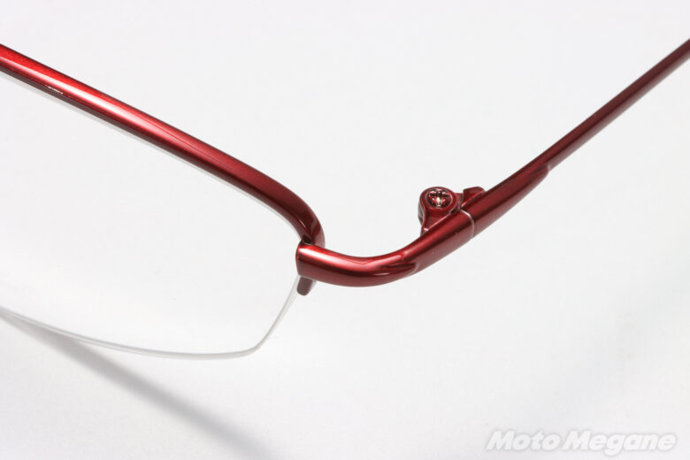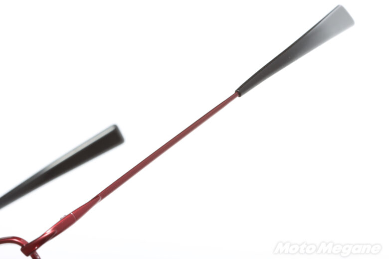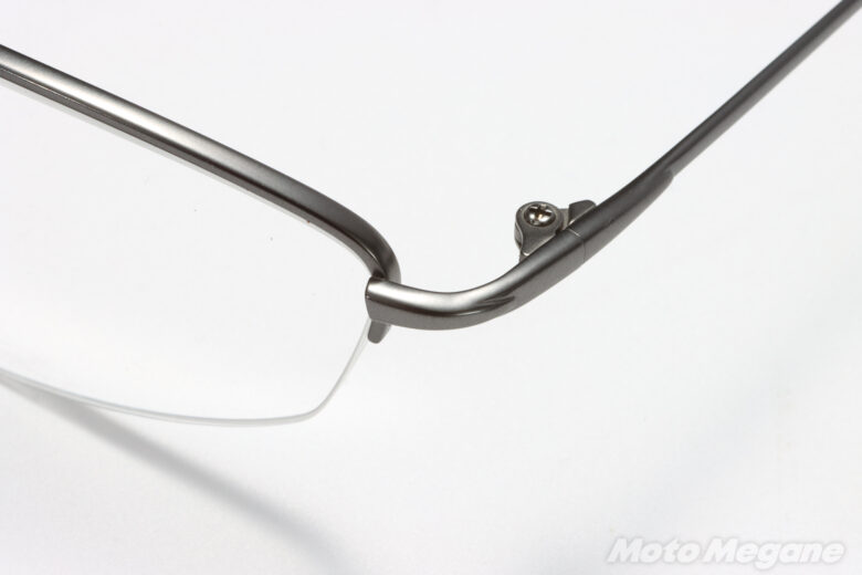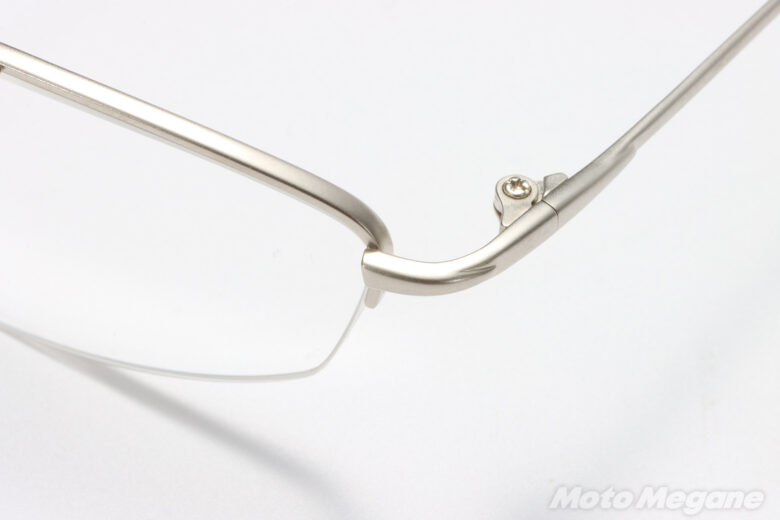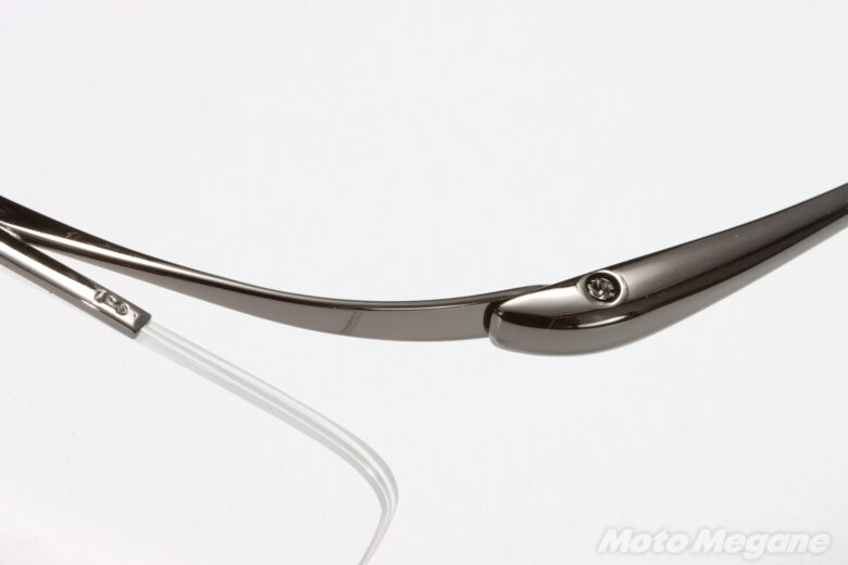 「テンプル」と呼ばれるメガネの「腕」の部分は適度なしなりと形状記憶特性を有する「βチタン」を採用。強度を維持するしつつ、細めのシェイプとすることで、着脱のしやすさと長時間の快適なかけ心地を両立。長さの調整にも対応している。