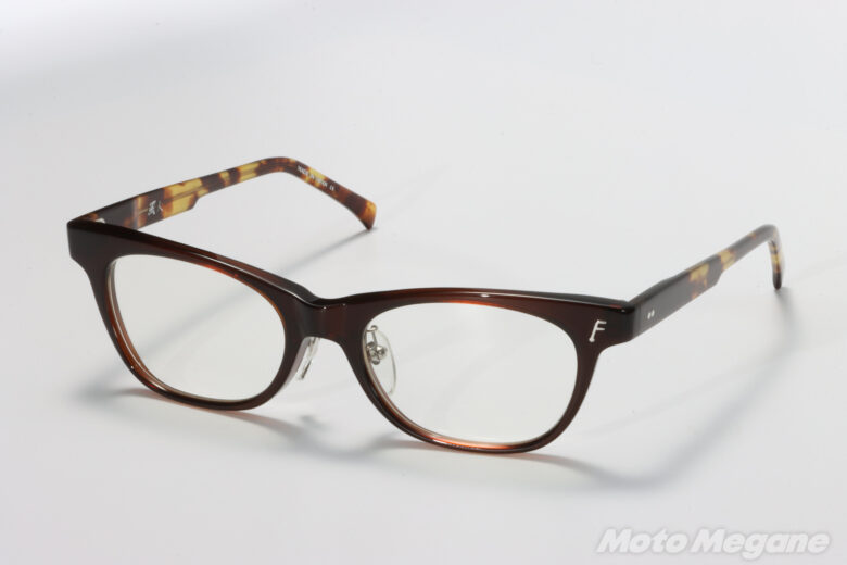 ヘルメット着用時でもストレスの無いメガネを求めるため、イタリア製のフレームを見つけ出し、それをベースに日本人向けに独自に改良したものが多くのライダーの好評を得ることになる。